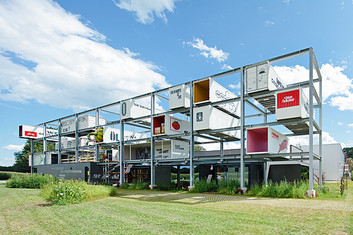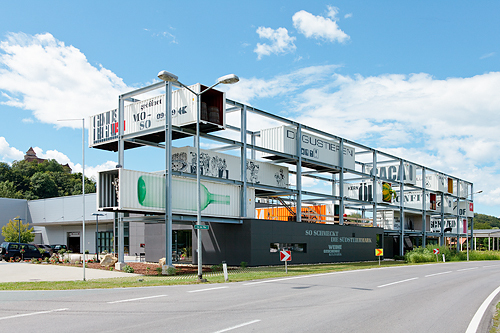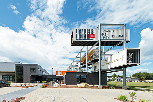 Das 60 m lange und 12 m hohe Genussregal entlang der Straße bildet das neue Wahrzeichen, das mit Irritation, Ironie und Information Aufmerksamkeit auf sich zieht. Das Regal ist mit Überseecontainern befüllt, deren Beschriftungen und Bemalungen auf die aus der ganzen Steiermark angelieferten Produkte - Wein, Schnaps, Öl, Fleisch, etc. - verweisen. Jeder Container steht für ein Produkt und symbolisiert zugleich den Handelscharakter des Ortes. Zugleich bilden die Container auch benutzbare Räume – so wird eine Buschenschank in luftiger Höhe eingerichtet werden. Das Wesen des Regals ist die Veränderung: Es wird in Zukunft immer wieder umgeräumt, d.h. neu bespielt werden und dadurch laufend neue Attraktionen für die Besucher bieten.