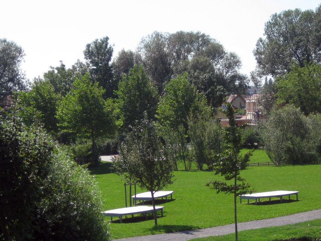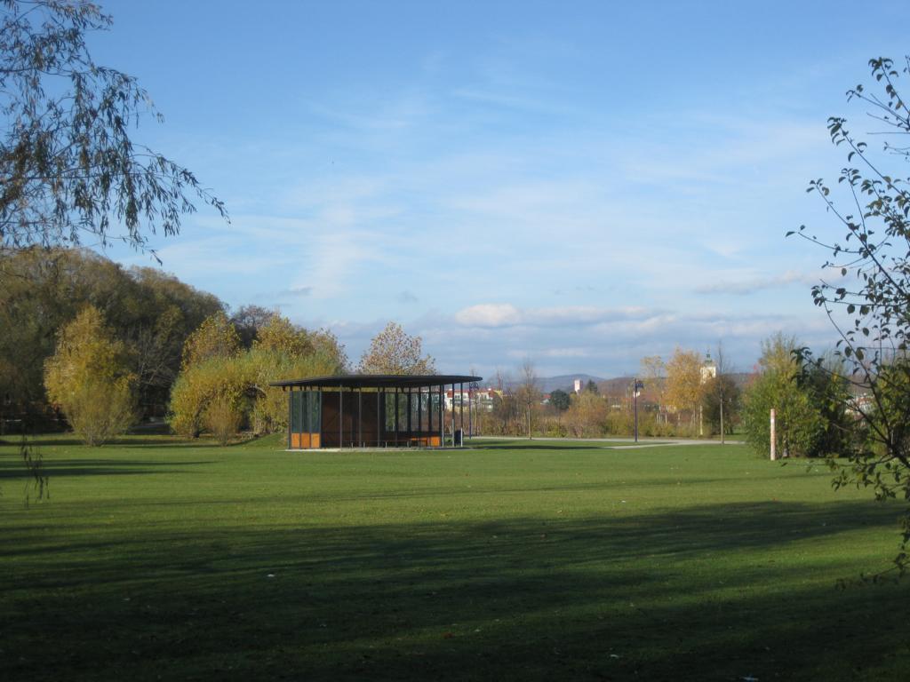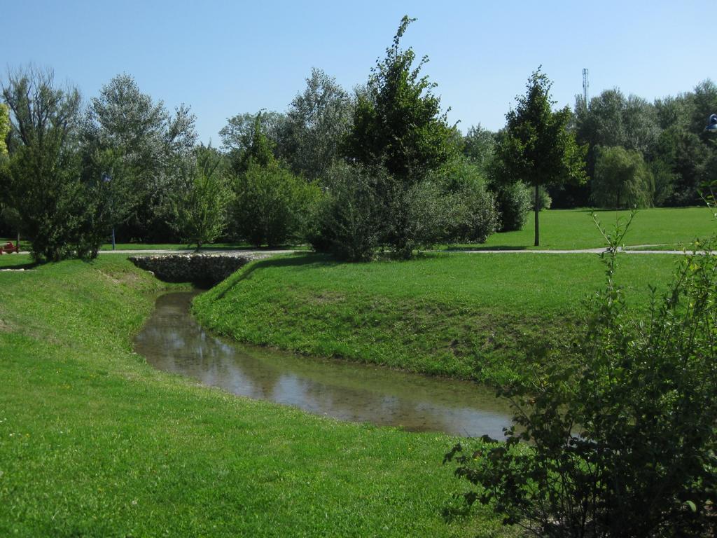 Ein aus der Triesting ausgeleiteter Parkbach wird zum großen Naturspielplatz am Wasser mit Sandbänken und Hängebrücke. Bauwerke aus lebendem Weidenflechtwerk, wie Weidendom, Weidenzelte und Weidentunnel ergänzen den naturnahen Spielbereich.
