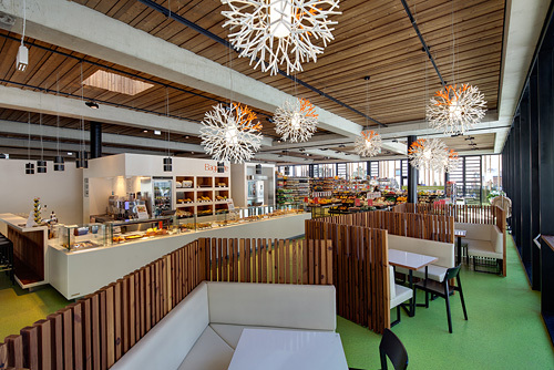 Bei der Energieversorgung wurde größter Wert auf die Wärme-Rück-Gewinnung aus den Kühlaggregaten gelegt, zusätzlich kommt eine Luft-Wärme-Pumpe zum Einsatz, womit der Energieverbrauch auf ein minimales Level gedrückt werden konnte. (Text: Claudia Wedekind nach einem Text der Architekten)