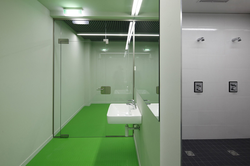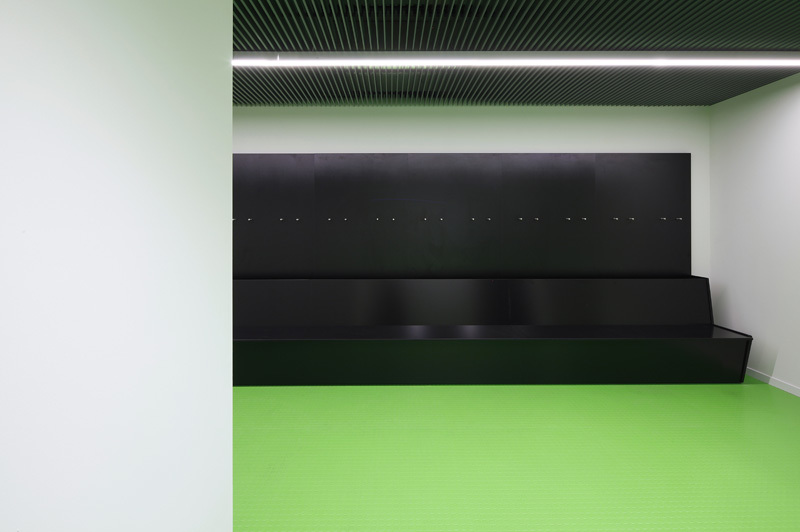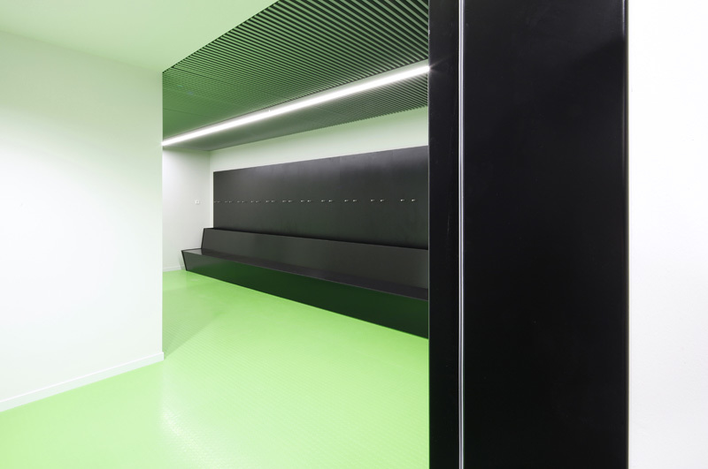 Indoor: Kraftkammer, Gymnastik, Umkleiden für Schüler, Trainer, Gastmannschaften und Schiedsrichter, Regenerationsbereich