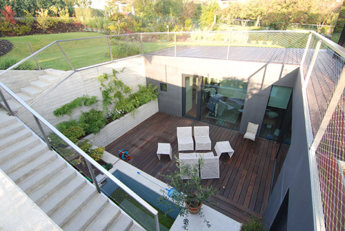 Die graue Gebäudehülle aus Aluminiumverbundplatten, die großen Fensterflächen und teilweise schrägen Außenwände verleihen dem generösen Zwei-Personen-Haushalt ein leicht außerirdisch anmutendes Erscheinungsbild. (Text: Marion Kuzmany)