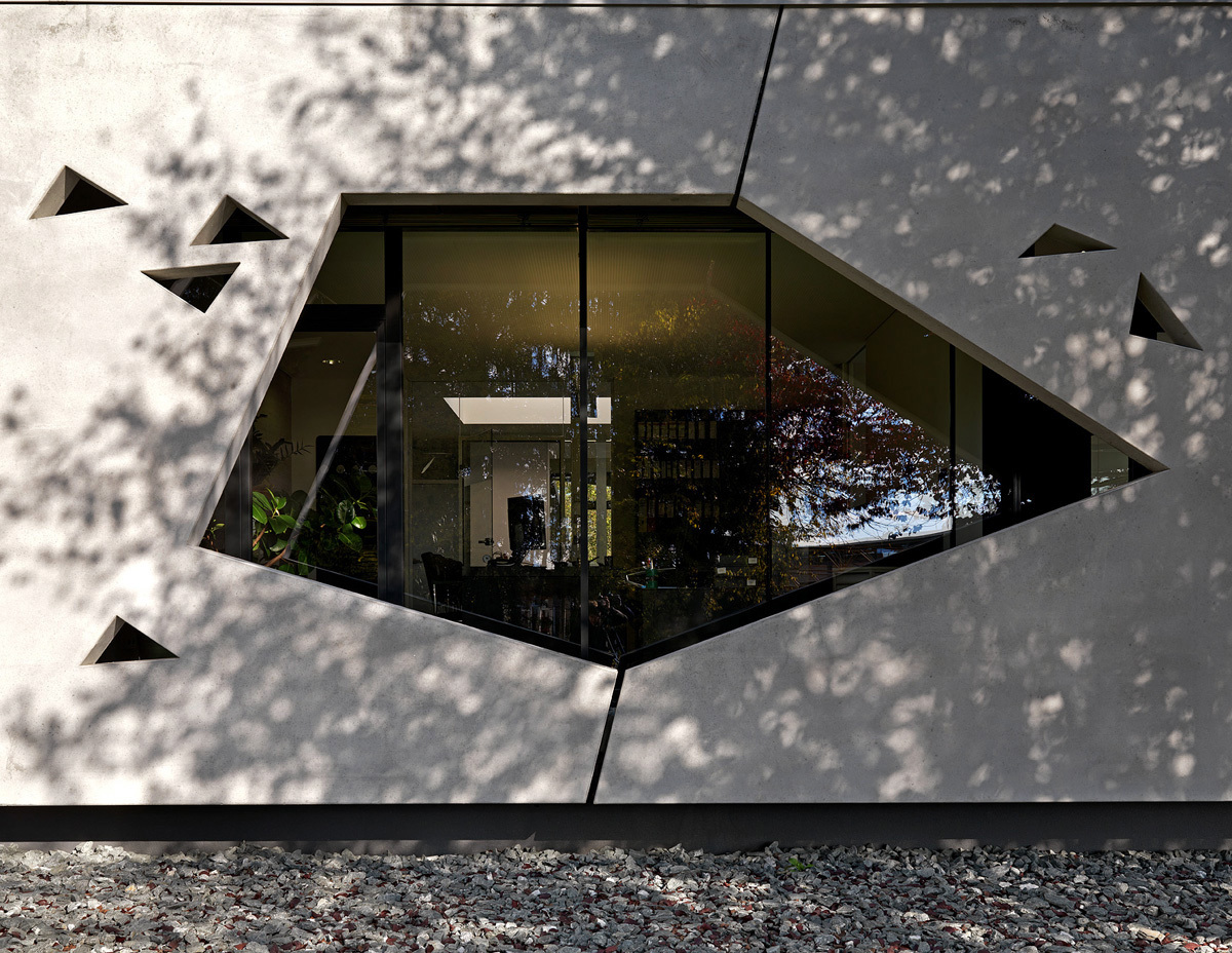 Die Polygone strukturieren und dynamisieren das Gebäude – kommunizieren innen und außen, machen die Funktionen ablesbar.