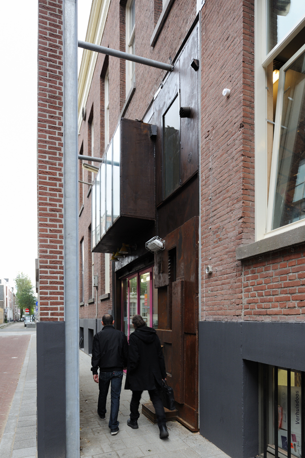 The offices and sound studio's have mainly been designed by Atelier van Lieshout based on the spacial design structure by 2012Architecten. AVL has chosen to weld the walls out of heavy rusted steel panels. A kind of fortification, literally, to filter the sound out from the hall but also in the figurative way to entrench against the next crisis.