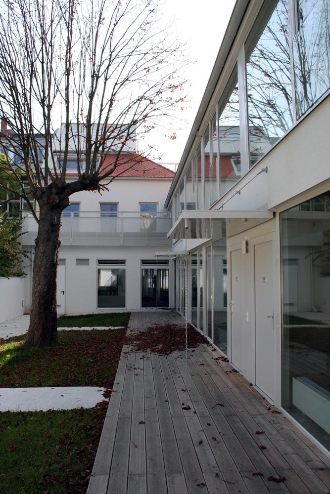 Der gemeinschaftlich genutzte Hofbereich, sowie eine Gemeinschaftsdachterrasse runden das Angebot für eine vorwiegend junge Zielgruppe von Studenten ab.