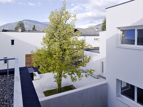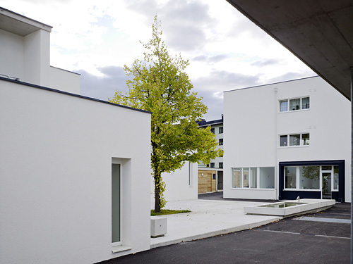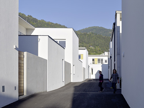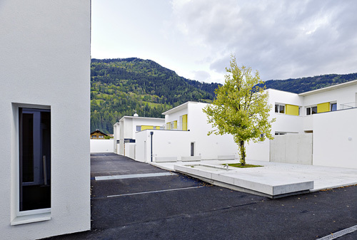 In der Mitte der Siedlung entstand rund um einen großen Baum ein zentraler Platz, an den sich das neue „Haus Anna“ anschließt – ein an Stelle der geforderten Adaptierung des Bestandsbaues neu errichtetes dreigeschossiges Gebäude mit Verwaltungsbereichen für das SOS-Kinderdorf, einem Mehrzwecksaal und Wohnungen. Der Platz selbst wird als öffentlicher Dorfplatz für temporäre Veranstaltungen wie Märkte und Feste genutzt und bietet Passanten, Anrainern und Kindern aus der Nachbarschaft einen Ort zum Spielen und Verweilen. Der gesamte innere Bereich der Siedlung ist autofrei Fußgängern und Radfahrern vorbehalten, Parkmöglichkeiten finden sich in einer Tiefgarage bzw. entlang der Erschließungsstraße. Eine Abfolge von schmalen Gassen, Treppen, Rampen, Plätzen und Verweilorten quert die gesamte Siedlung und kann als Verbindungsweg vom Gemeindeamt zur Kirche öffentlich genutzt werden. (Text: Claudia Wedekind)