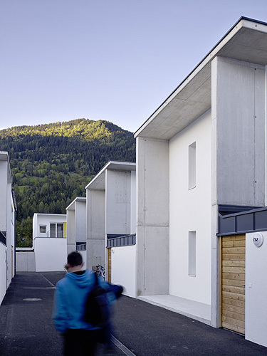 Die 37, in der Siedlung untergebrachten, unterschiedlich großen Wohneinheiten (2-, 3- und 4-Zimmer-Wohnungen und SOS-Familienhäuser) folgen alle derselben Haus-Typologie: Eine gedeckte Eingangszone ist zugleich Sitzbereich und bildet zusammen mit dem anschließenden kleinen Garten den privaten Außenraum, zu dem sowohl die Wohnbereiche im Erdgeschoss, als auch die Schlafräume im Obergeschoss orientiert sind. Anstelle von Kellern gibt es im Eingangsbereich Wirtschafts- und Lagerräume sowie für jedes Haus einen „Schuppen“ mit überdachtem Fahrradabstellplatz. Die ebenfalls dieser Grundtypologie folgenden, größeren SOS-Familienhäuser sind nicht an einer Stelle konzentriert, sondern in die Gesamtheit der Siedlung eingewoben.