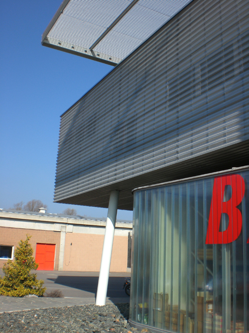 Das Konzept für den Entwurf war eine Gebäudestruktur zu entwickeln welche eine sehr hohe Flexibilität besitzt und gleichzeitig Bezug auf die serielle Produktion der Firma nimmt. Diese Struktur wurde in Form einer Stahlkonstruktion gefunden welche leicht und fast spielerisch die Baumasse beherbergt. Die Stahlkonstruktion ist eine Art Filter hinter bzw. unter welcher die erforderlichen Funktionen angeordnet werden konnten.