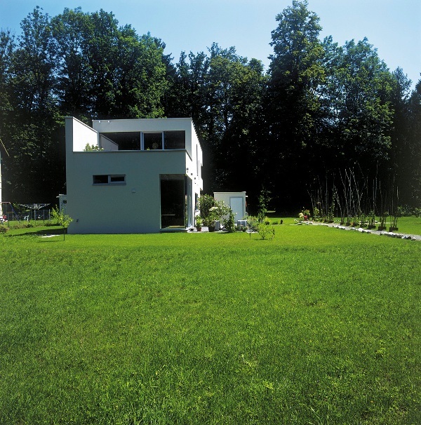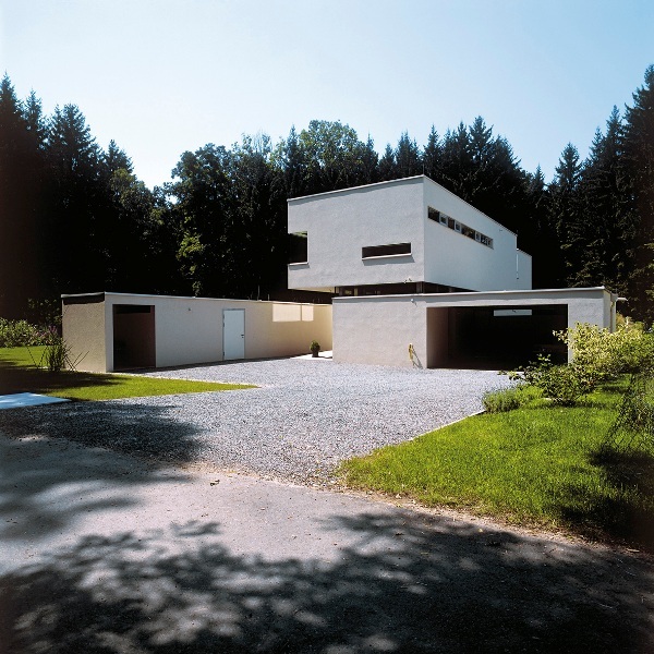 Der Hauptbaukörper mit Garage bzw. der Schuppen werden so positioniert, dass im Ankommensbereich eine Hofsituation entsteht, welche gleichzeitig den Straßenraum vom privaten Grünraum trennt. Beide Bereiche kommunizieren jedoch über den freigelassenen Zwischenraum miteinander. (Text: Architekten)