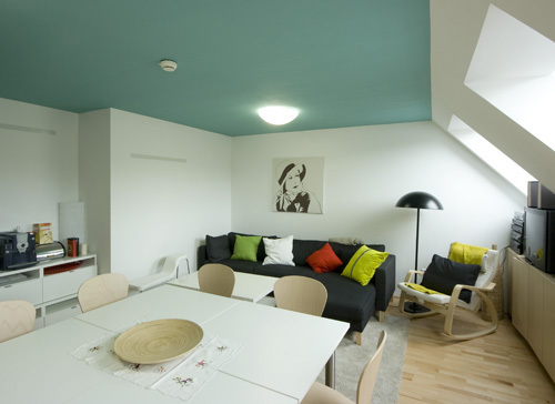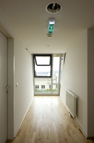 Die Intention der Caritas, den typischen Heimcharakter durch den Einzug in ein zum Teil vermietetes Haus zu vermeiden, soll den Frauen den Weg in ein selbstständiges Leben erleichtern. Für die Architekten bedeutet dies wiederum verstärkte Kommunikation mit den Bewohnern des Bestands im Planungs- und Bauprozess. Letztlich kam der Umbau auch den regulären Bewohnern zugute: Thermisch sanierte Fassaden des Althauses Isolierglasfenster, ein Liftzubau an der Hoffassade und ein Müllabstellplatz verbessern den Wohnkomfort. Die zusätzliche verschließbare Stiegenhauseingangstüre und sowohl die bauliche als auch sicherheitstechnische Trennung zum Akutzentrum gewährleisten die erforderliche Sicherheit für die Bewohnerinnen, die im Mutter-Kind-Haus wohnen.