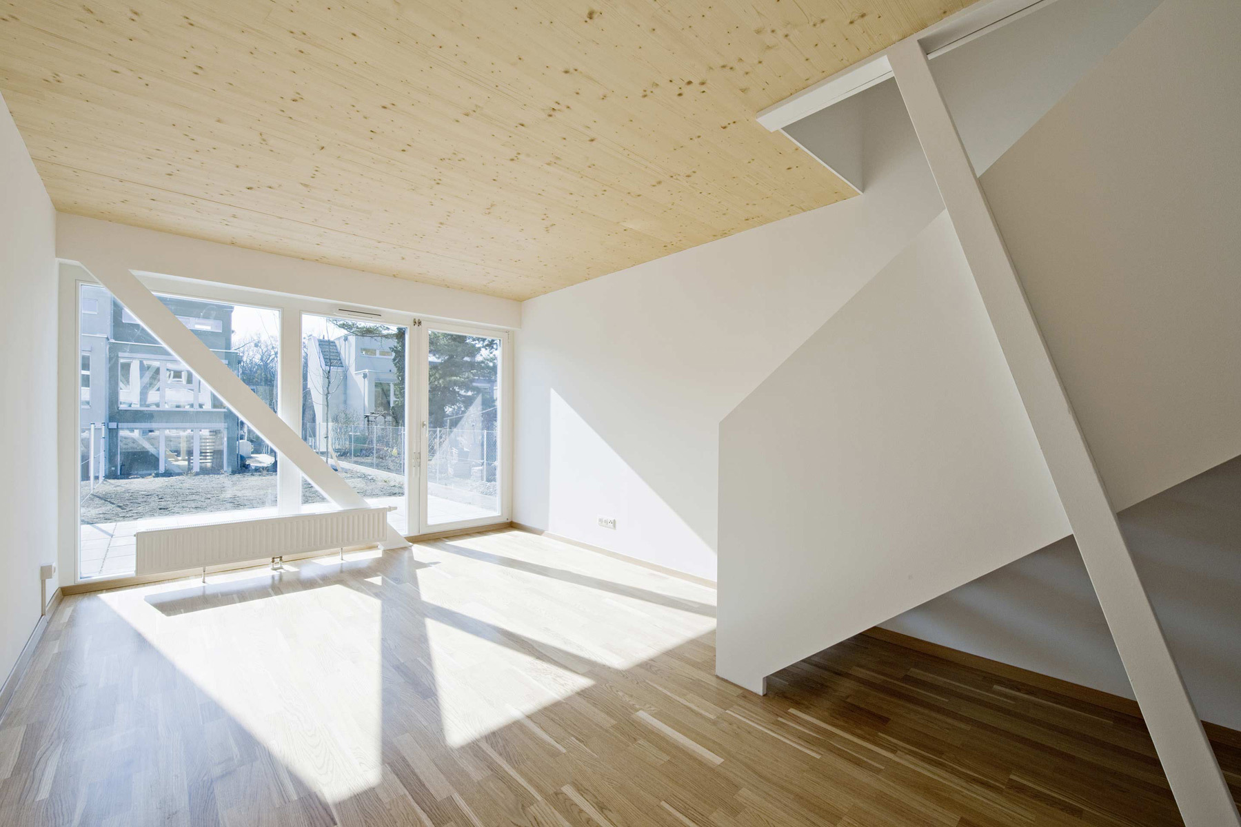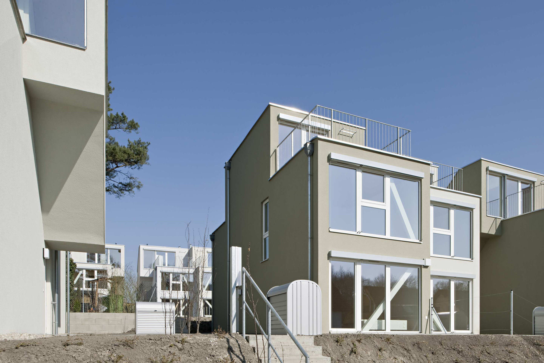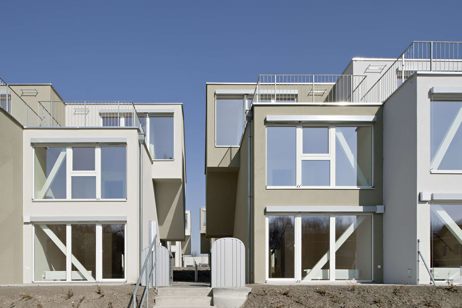 Äußerlich sind die Häuser völlig identisch, im Inneren jedoch sind sie vielseitig konfigurierbar und können unterschiedlichste Lebens-, Wohn- und Arbeitsformen aufnehmen, zumal sie sich durch einen stark vereinfachten Aufbau auszeichnen. Die konzeptionelle Einfachheit des Hauses entstand nicht zuletzt aus dem Anspruch der Entwicklung eines qualitativ hochwertigen Standard-Gebäudetyps. Der Aufbau des Hauses erfolgt ausschließlich mit Fertig- und Halbfertigteilen, die auch später leicht demontiert werden können und vollständig recyclebar sind. Die Siedlung zeichnet sich durch eine hohe Nachhaltigkeit aus: z.B. durch Einsatz emmissionsarmer Bauprodukte, standortgerechter Bepflanzung sowie Regenwassernutzung für die Bewässerung. Holzbaustoffe kommen als wesentlicher Bestandteil in Form von Decken- und Wandelementen und für Stiegen, Fenster und Böden zum Einsatz. Die Energieversorgung erfolgt über ein zentrales Nahwärmenetz und ist äußerst sparsam.