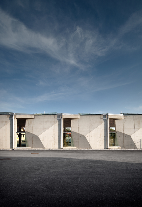 Im Osten wurde unter das Bahnhofsdach ein eingeschoßiger, an den Enden abgerundeter Baukörper aus rötlich gefärbtem Beton eingeschoben, der die Anlage wie ein Korken abschließt. Neben den Toiletten beherbergt er Räume für Personal und Technik. Bemerkens- und lobenswert ist, dass diegute Detail- und Oberflächenqualität auch im Inneren bis in den letzten Winkel durchgehalten wurde und so die Räumlichkeiten zu einem angenehmen Arbeits- und Aufenthaltsort für die Mitarbeiter werden.