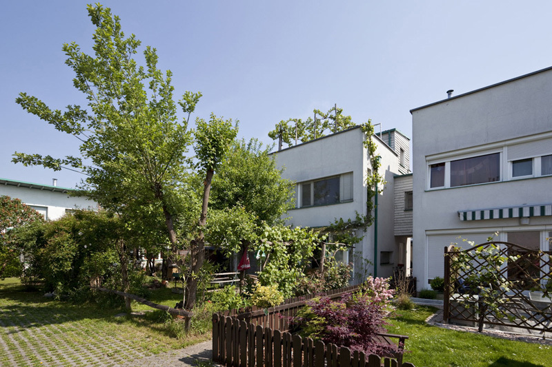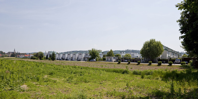Dieser räumlichen und damit auch sozialen Nivellierung entgegenzuwirken ist (auch) Aufgabe der Architekten. Das Grazer Büro Croce & Klug hat sich dieser Herausforderung gestellt. Über einen Zeitraum von fast 20 Jahren entstanden nahe dem Ortskern von Hausmannstätten 80 Wohnungen im verdichteten Flachbau. Die Wohnbebauung schuf nicht nur Wohnraum in einer räumlich geordneten Struktur, sondern die Architekten versuchten auch, die Siedlung sozial in das Umfeld zu integrieren und einen Bezug zum Ort herzustellen.
