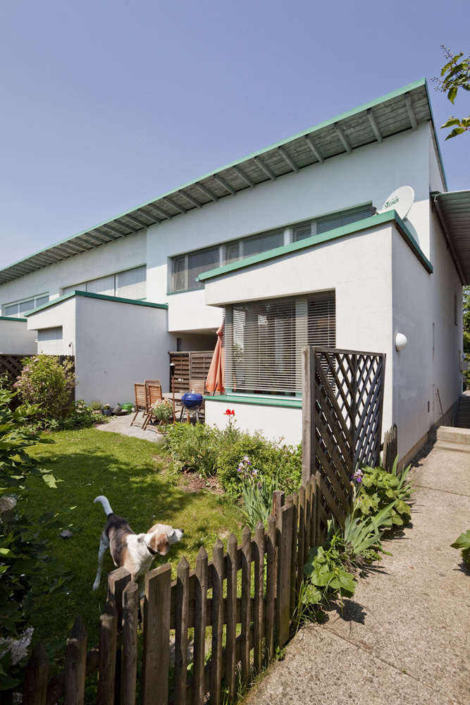 Formal stellen die Dächer, die der Siedlung ihren inoffiziellen Namen „Grüne-Dächer-Siedlung“ gegeben haben, mit den deutlich ausgebildeten Dachüberständen eine Referenz an die ländliche Umgebung dar und fügen sich harmonisch in das Landschaftsbild ein. Um nicht nur die Gemeinschaft unter den Siedlungsbewohnern zu stärken, sondern auch eine Durchmischung mit der Bevölkerung der umliegenden Dorfteile entstehen zu lassen, sah der Wettbewerb eine größere Durchlässigkeit der Siedlung vor als schlussendlich realisiert werden konnte. Die zu 50% durchbrochenen Erdgeschoße der Reihenhäuser der nördlichen Zeile, die einen ungehinderten Blick in das Innere der Siedlung erlauben, zeugen von dieser Intention der Architekten. Eine stärkere Ausbildung der Durchgänge im Inneren und eine Fortführung der Hauptachsen außerhalb der Siedlung als fußläufige Verbindung bis hin zur Kirche von Hausmannstätten, wie von Croce & Klug im Wettbewerb vorgeschlagen, scheiterte am Widerstand der ersten Bewohner und am überschaubaren Interesse der Gemeinde. Die Jugend ist in diesem Punkt den Erwachsenen einen Schritt voraus: Die Kinder der Bewohner bringen ihre Freunde von außerhalb einfach zum gemeinsamen Spielen in die Siedlung mit.