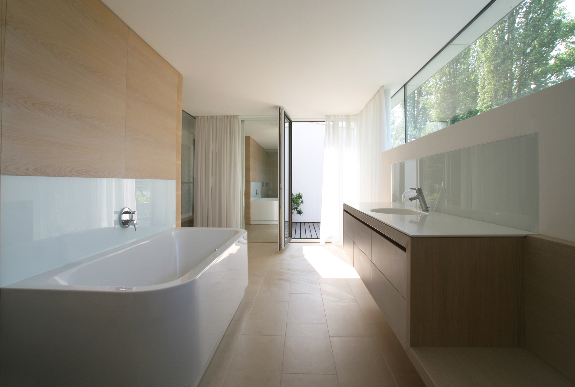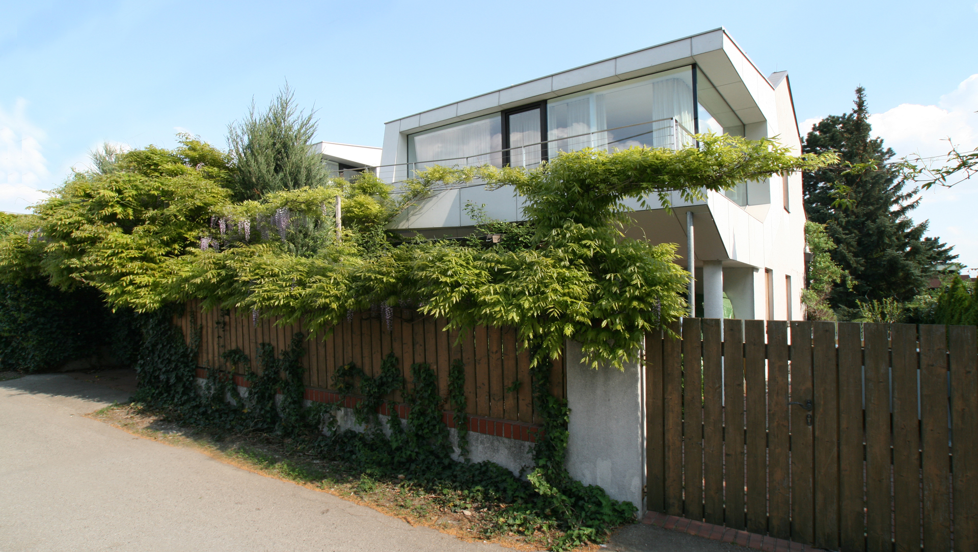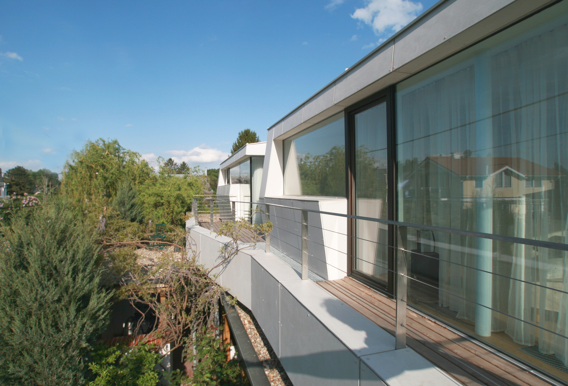 Der Dachbodenausbau öffnet das Haus zur Umgebung, großzügige Glasflächen verbinden den Innen- und Außenraum miteinander und bieten endlich den ersehnten Blick in die Umgebung – sowohl aufs Wasser wie auch auf den nahegelegenen Park. Der vorgelagerte Balkon dient nicht nur als erweiterter Wohnraum, sondern bietet auch einen Sichtschutz zur direkt vor dem Haus vorbeiführenden Wohnstraße. Bislang war die Umgebung und mit ihr das Grün ausgeblendet gewesen. Der vertikale Zubau hat das Gebäude nun in den Kontext der Umgebung gerückt. Die Öffnung nach außen scheint angesichts der Standortqualitäten im Kleingarten Mexiko nur schlüssig. (Text: Martina Frühwirth nach einem Text der Architekten)