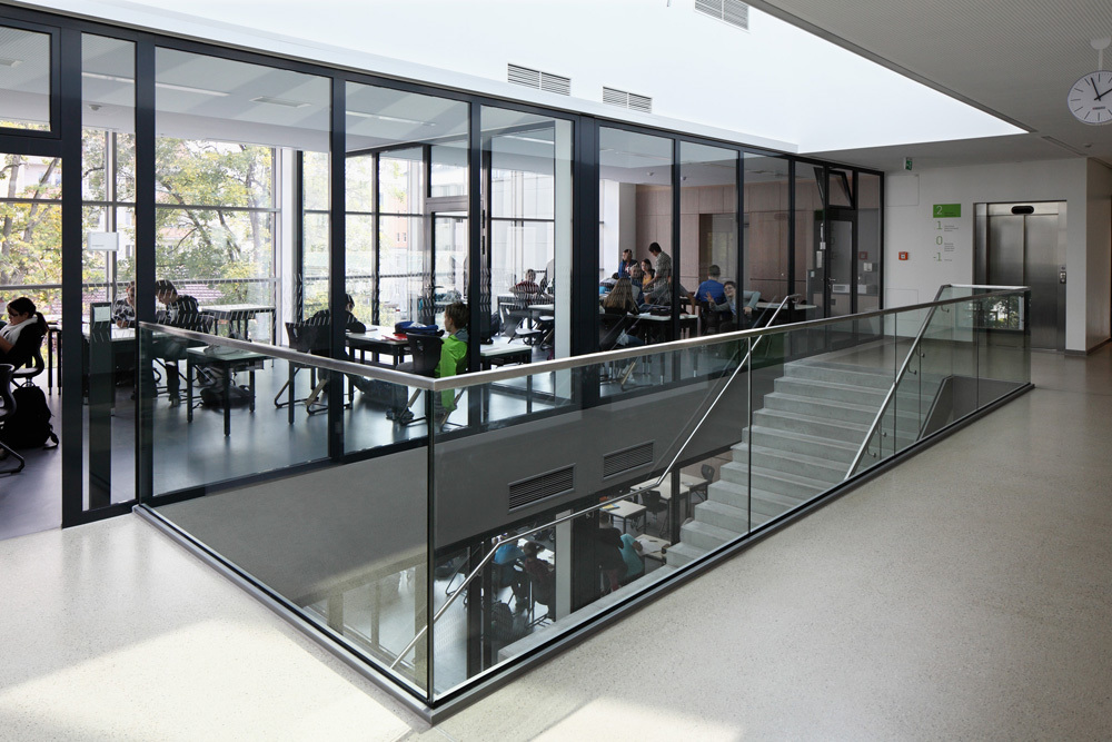 Die Einbindung der Nutzer und Nutzervertreter im Planungs- und Ausführungsprozess war die Basis für ein gelungenes Ergebnis. Die Kostenvorgaben wurden eingehalten, sogar der Ausstattungsstandard der Neuen Mittelschule wurde auch in der Volksschule umgesetzt. Durch die behördlichen „Vereinfachungsmöglichkeiten“ des Bauens im Bestand, war es möglich, die punktuell über das Ziel hinausschießenden Anforderungen im Neubau in vereinfachter und nicht minderer Qualität umzusetzen. Die besonders gute hausinterne Zusammenarbeit mit den Sachverständigen und Behörden in Sachen Wirtschaftlichkeit sucht ihresgleichen." (Text: Architekten)