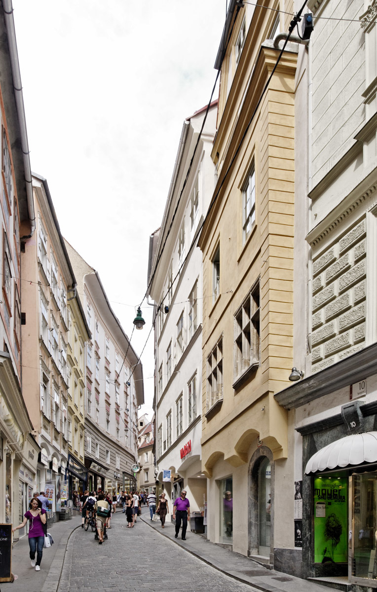 Im denkmalgeschützen und stadtbekannten „Strehly-Haus“ (benannt nach der bis 2009 bestehenden, beliebten Konditorei) in der Grazer Sporgasse wurden vom Architekten Christian Andexer im Rahmen einer umfassenden Sanierung Geschäftsflächen und 21 Wohnungen mitten im UNESCO-Weltkulturerbe geschaffen. Von außen bleiben die sensiblen Eingriffe im 1596 erstmals erwähnten Haus Sporgasse 12 und dem später entstandenen Haus Nr. 14 so gut wie unsichtbar. Nur der elegant beleuchtete Durchgang in den Innenhof deutet darauf hin, dass hinter der restaurierten Fassade doch um einiges mehr passiert ist.Gerade in einer baukulturell wertvollen Altstadt wie der von Graz ist es unbedingt notwendig, neuen, zeitgemäßen Wohnraum zu entwickeln, um ein lebendiges städtisches Leben zu erhalten und zu forcieren. Im historischen Kern von Graz wurde über Jahrhunderte immer gewohnt, Handel getrieben und gearbeitet. Eine Politik der ausschließlichen Konservierung würde diese Qualitäten gefährden. Der kontinuierlichen Veränderung von Nutzung, Sozialstruktur und wirtschaftlicher Entwicklung muss auch räumlich Rechnung getragen werden, die baulichen Strukturen müssen – mit Respekt vor dem historischen Bauerbe – den heutigen Anforderungen angepasst werden. Andexer, der sich intensiv mit dem Bauen in sensiblem Bestand beschäftigt, betont, dass die Authentizität und Integrität der Altstadt auf keinem Fall kompromittiert werden dürfen. Ebenso wenig dürfe bei Interventionen aber der Mut fehlen, das Neue hin und wieder aus dem Alten herausschauen zu lassen. Die Integration hochwertiger zeitgenössischer Architektur in das historisch gewachsene Ensemble ist eine spezifische Qualität von Graz. Darauf weist auch die Begründung für die Ernennung der Grazer Altstadt zum UNESCO-Weltkulturerbe explizit hin. Dieses Potenzial sollte sowohl aus kulturellen als auch aus wirtschaftlichen Gründen (als Alleinstellungsmerkmal im Städtewettbewerb) forciert werden.
