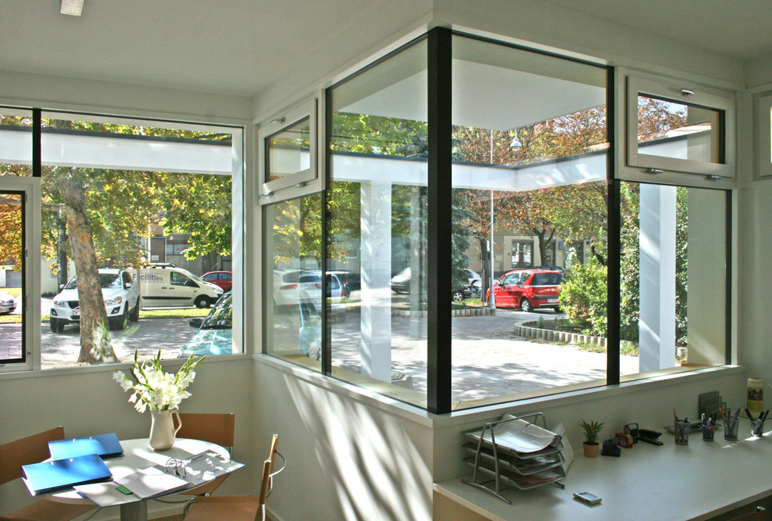 Die neuen Gebäudeteile wurden in Holzbauweise errichtet. Für die Aufstockung konnte die Holzriegelkonstruktion so optimiert werden, dass keine Verstärkungsmaßnahmen für die bestehende Tragstruktur erforderlich waren. Der Zubau erfolgte in Brettsperrholzbauweise.