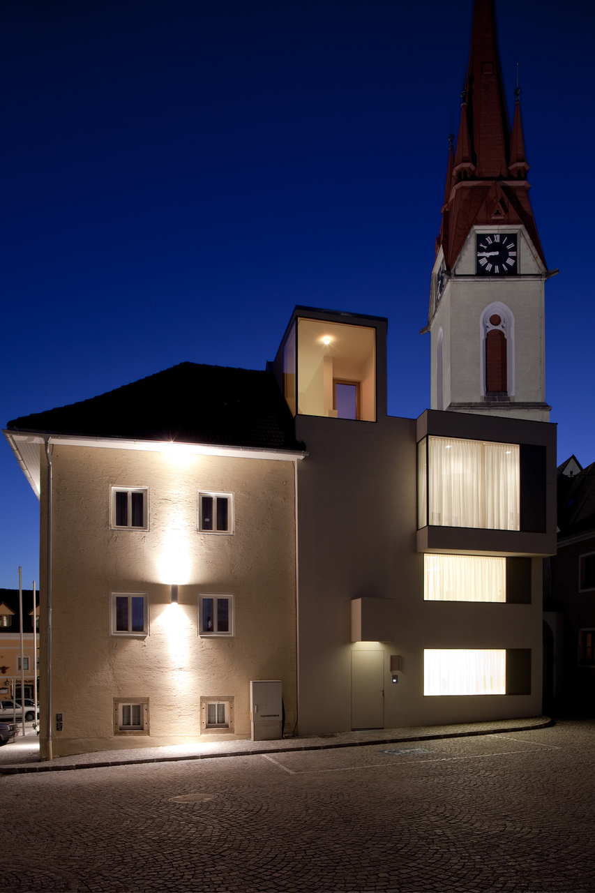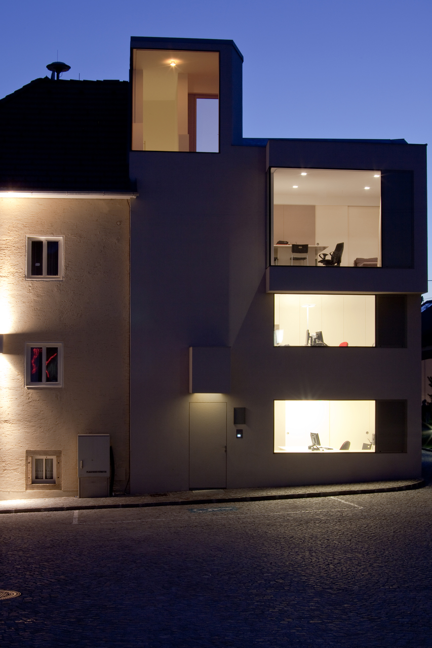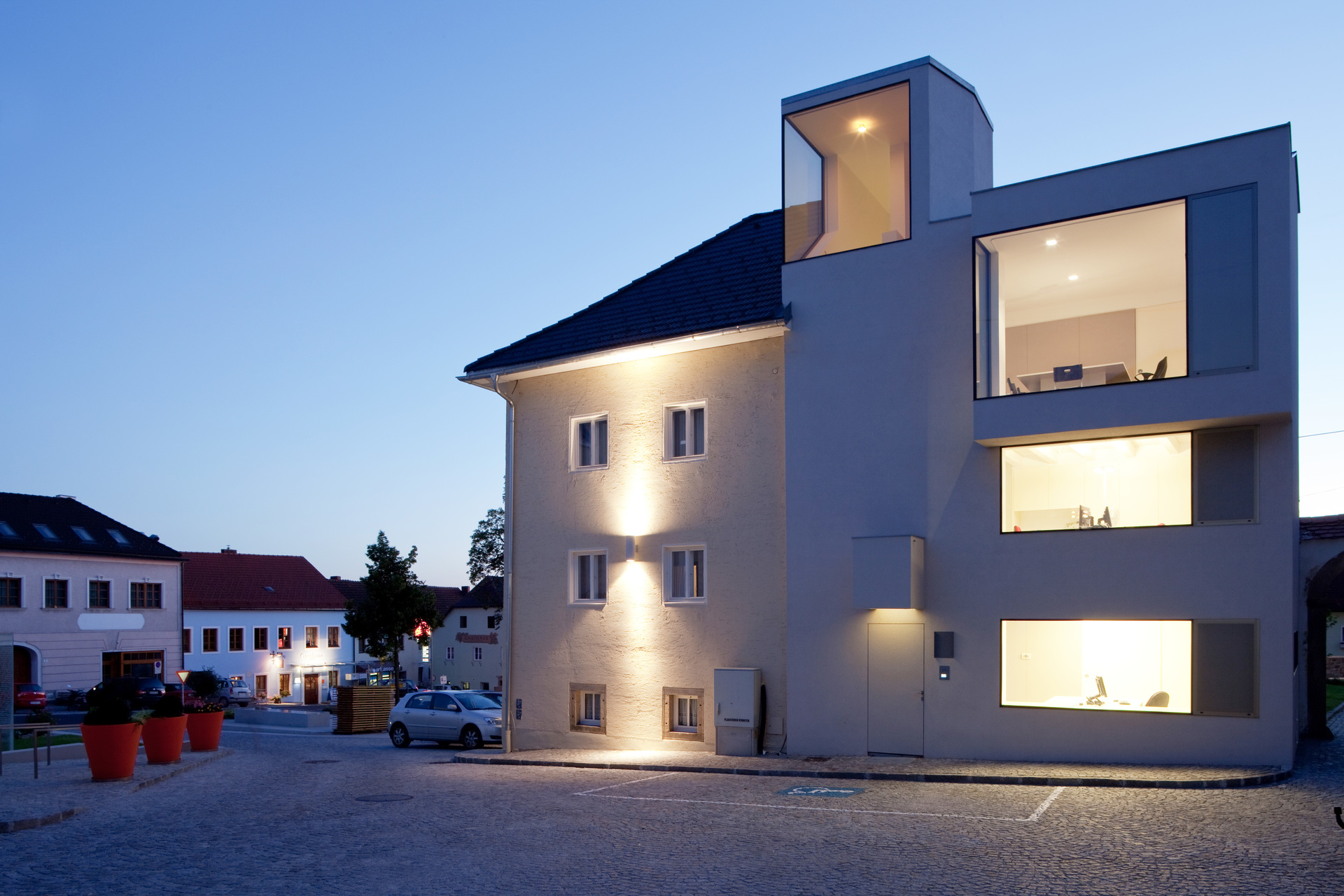 Bis vor kurzem war es ein Leerstand in bester Lage in Neumarkt im Mühlkreis. Jetzt belebt ein neues Bürohaus mit nur 34 Quadratemetern Grundfläche den Ort im Mühlviertel. Das 2010 entstandene winzige Stadthäuschen mutet fast japanisch an. Es ist ein in vielerlei Hinsicht herausragendes Gebäude. Denn über den lokalen Mehrwert hinaus ist der Bau von Schneider & Lengauer Architekten ein exemplarischer Beitrag für Baukultur im ländlich-dörflichen Umfeld. Die Architekten Peter Schneider und Erich Lengauer sind ebenfalls regional verankert und in Neumarkt im Mühlkreis ansässig.