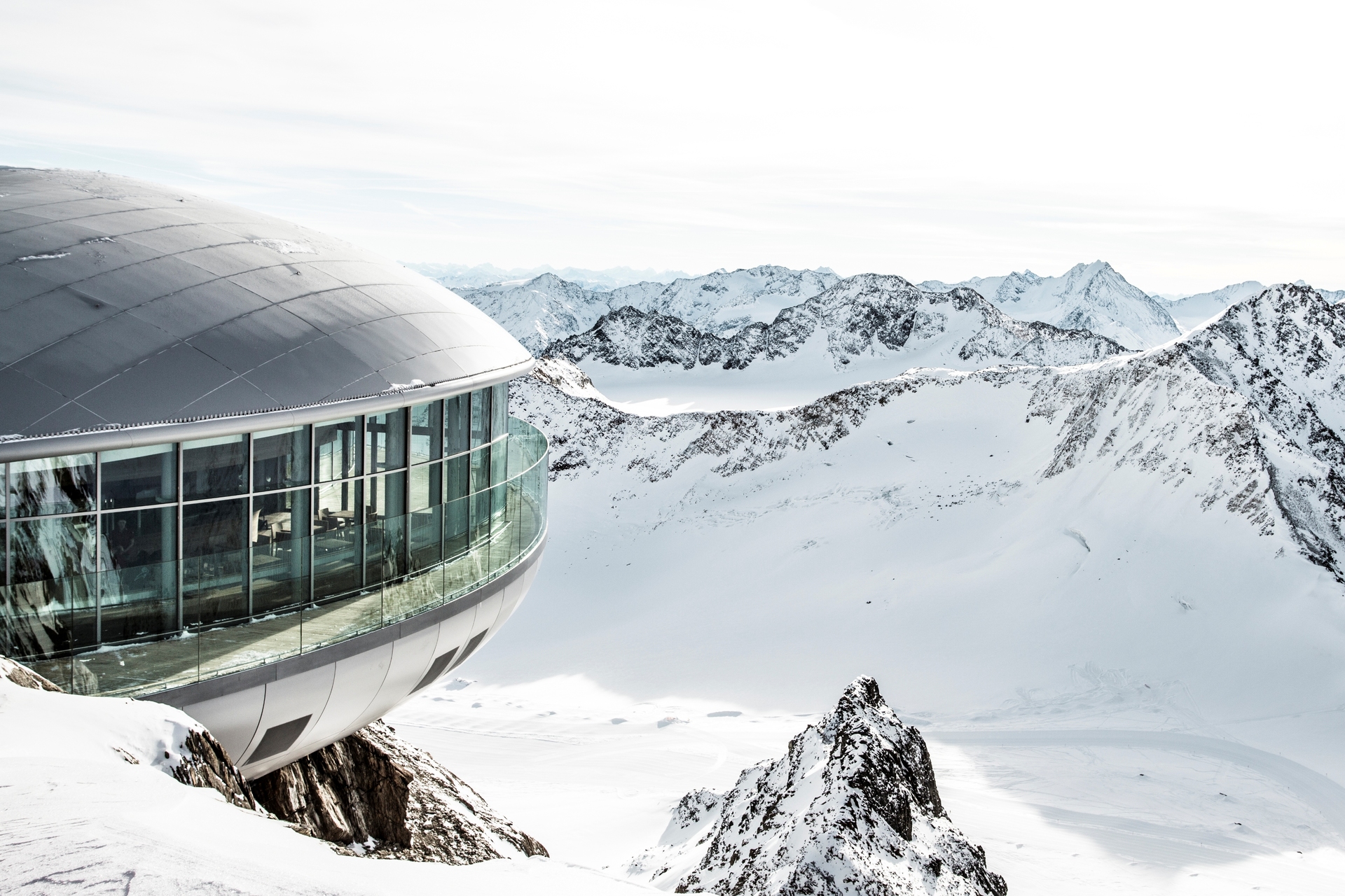 Wie ein von Wind und Wetter geformter Gupf balanciert die mattsilberne Bergstation samt zugehörigem Café und Aussichtsterrasse nun auf der Kante des Hinteren Brunnenkogels. Vorteil war dabei, dass man sich auf die Fundamente der alten Bergstation stützen konnte. „Eine komplette Neuerrichtung an einer so exponierten Stelle wäre heute auch aus Naturschutzgründen praktisch unmöglich“, sagt Stefan Richter, Marketingchef der Pitztaler Gletscherbahnen.