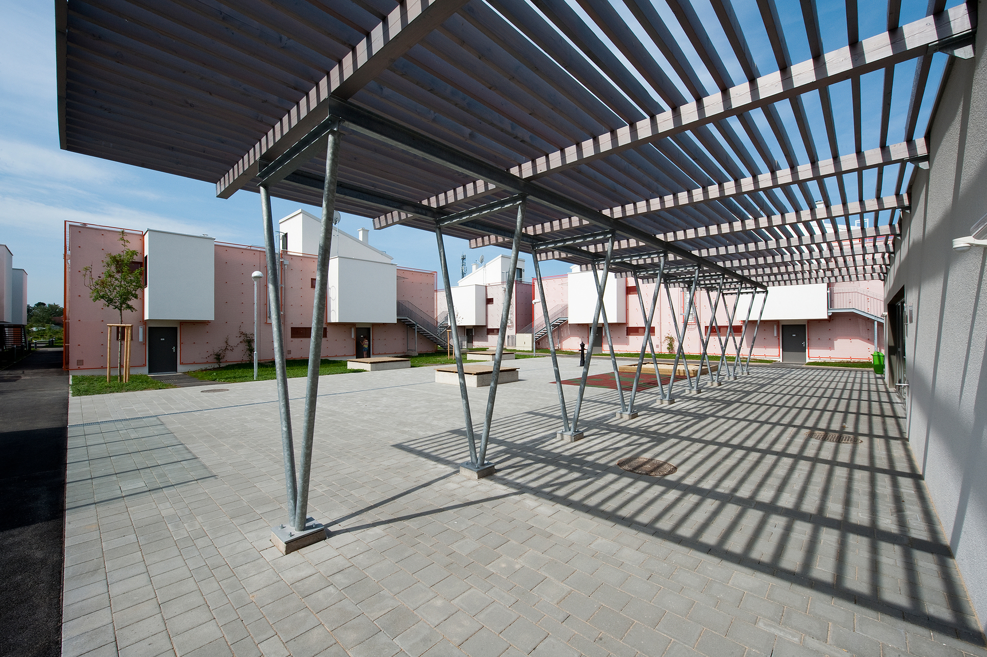 In jedem Fall sei ein Besuch vor Ort empfohlen, denn die Fotos zeigen die noch unbelebte Siedlung, unmittelbar nach der Fertigstellung. In direkter Nachbarschaft zur Siedlung befindet sich das jüngste und letzte Projekt von Essling II, die im Herbst 2014 fertiggestellte Gartensiedlung von huhs & hanenberg. (Text: Martina Frühwirth)