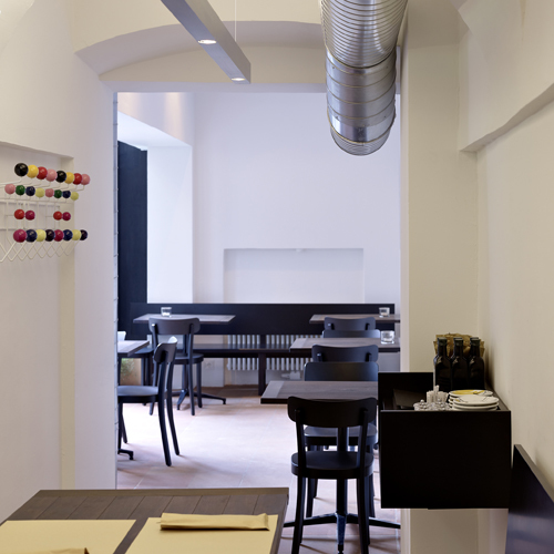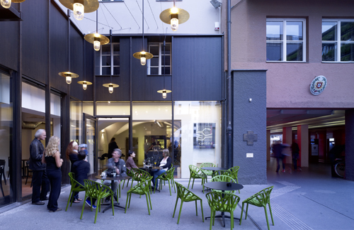 Nach der gelungenen Neugestaltung des südlichen Baukörpers am Sparkassenplatz und der Fertigstellung des Kaufhaus Tyrol wurde die Nische zu einem attraktiven innerstädtischen Zwischenraum. Vor allem durch die Entscheidung den ursprünglich 3-geschossigen, schmalen Zwischenbau aufs Erdgeschoss zu reduzieren, erhielt die Platznische, mit Blick auf den verglasten Erschließungsbereich des Kaufhaus Tyrol, neue Dimensionen.Passend zum Gastronomiekonzept unterstützt die Architektur mit Holz und Leuchtenhimmel die gedachte atmosphärische Stimmung dieses besonderen Ortes. Die Innenräume wurden ohne statische Eingriffe mit neuen Oberflächen adaptiert. (Text: Architekten)