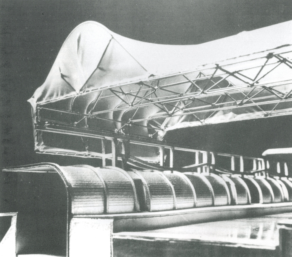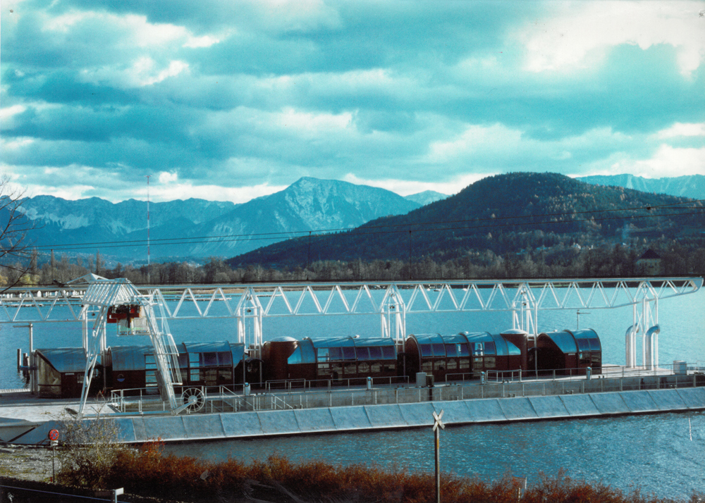 Die im Wettbewerbsprojekt vorgesehene mobile Überdachung der Schifffahrtsanlage soll erst in einer zweiten Baustufe ausgeführt werden. Die konstruktiven Maßnahmen dafür wurden vorgesehen.