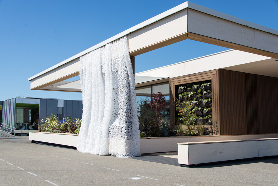 Die Strukturelemente der Außenwand geben dem Haus seine nach außen sichtbare Form, ähnlich wie die großen Äste eines Baumes. Statt der Blätter hat LISI wallende weiße Vorhänge aus einem robusten, wetterfesten Material: Sie können je nach Bedarf vorgezogen werden, um Privatsphäre zu schaffen, oder sie werden zur Seite geschoben um das Haus nach außen zu öffnen. (Text: Solar Decathlon Team Austria)