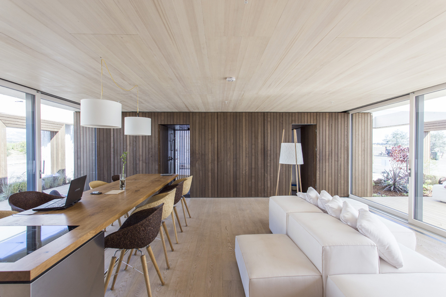 Wo hört der Innenraum auf, wo fängt der Außenraum an? Bei LISI lässt sich das gar nicht so genau sagen. Die architektonische Grundidee des Gebäudes ist die nahtlose Verbindung des großzügigen Wohnraums mit den Patios im Norden und Süden. Bei schönem Wetter verschwinden die Glasfassaden auf beiden Seiten in der Wand, und schon entsteht eine teilüberdachte Wohnfläche, etwa zweimal so groß wie der Innenraum.Die Raumaufteilung im Inneren ist einfach: LISI wurde so geplant, dass der offene Wohn-Koch-Essbereich möglichst viel Fläche einnehmen kann, Badezimmer, Schlafzimmer und der Technikraum sind dafür bewusst recht klein gehalten.