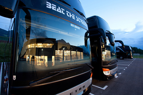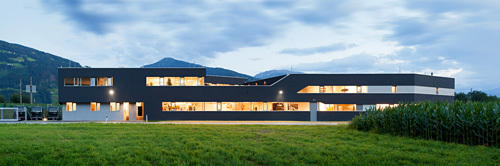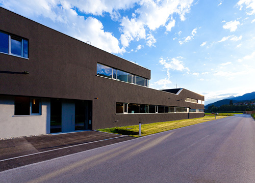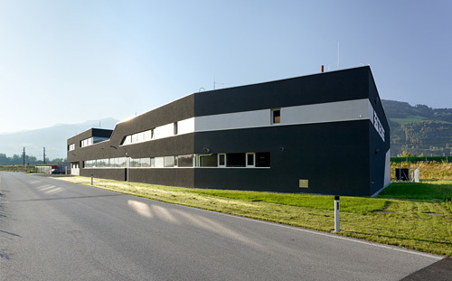 Das in Tirol ansässige Unternehmen „Beat the Street Band & Crew Bussing“ hat sich darauf spezialisiert, mit individuell und exklusiv ausgestatteten Bussen das Who-is-Who der Musikwelt auf deren Tourneen durch ganz Europa zu fahren. Für ihren neuen Firmensitz in Fritzens – wo auch die Busse in der hauseigenen Werkstatt ausgebaut werden – wünschten sich die Inhaber ein Gebäude, das über eine reine Funktionserfüllung hinaus als Aushängeschild des Unternehmens fungiert.Das Grundstück im Gewerbegebiet von Fritzens liegt direkt an der Unterinntaltrasse der Bahn. Der langgezogene, zweigeschossige Baukörper ist entlang der nördlichen Grundstücksgrenze und damit im maximalen Abstand zur Bahntrasse platziert, der südliche Bereich des Grundstücks dient als Busparkplatz mit 26 Stellplätzen. Das Gebäude beinhaltet auf zwei Ebenen sehr unterschiedliche Arbeitsplätze bzw. -bereiche, von einer Bushalle mit Waschbox, der Werkstatt mit Tischlerei, Schlosserei und Lackiererei über Büroflächen bis hin zu einem Schlaf-Wohnbereich für Busfahrer. Mit der zum Teil zweigeschossigen Bushalle als Zentrum konzentriert sich die technische Infrastruktur im westlichen Bereich. Die Werkstatt ist direkt an die Bushalle angegliedert, Lager- und Nebenräume sind rund um die Halle angeordnet, womit möglichst kurze Wege geschaffen wurden und reibungslos funktionierende Arbeitsabfolgen gewährleistet sind. Im östlichen Teil des Gebäudes befinden sich erdgeschossig Aufenthaltsräume, 3 Schlafzimmer und eine Sanitäreinheit für Busfahrer, im Obergeschoss die Büro- und Sozialräume der Mitarbeiter inklusive einer Dachterrasse. Zwei der Büros liegen direkt über der Werkstatt und ermöglichen einen direkten Blickkontakt zwischen Büro und Bushalle. Zwischen Technik und Verwaltung befindet sich das offene Stiegenhaus, das sämtliche Bereiche erschließt.