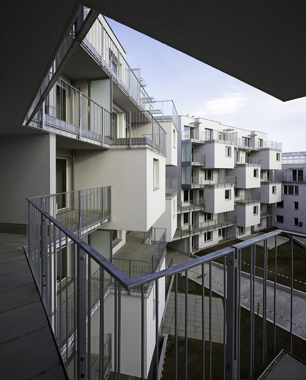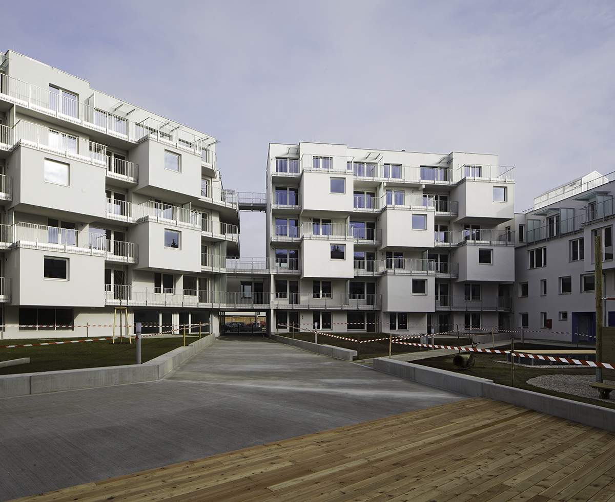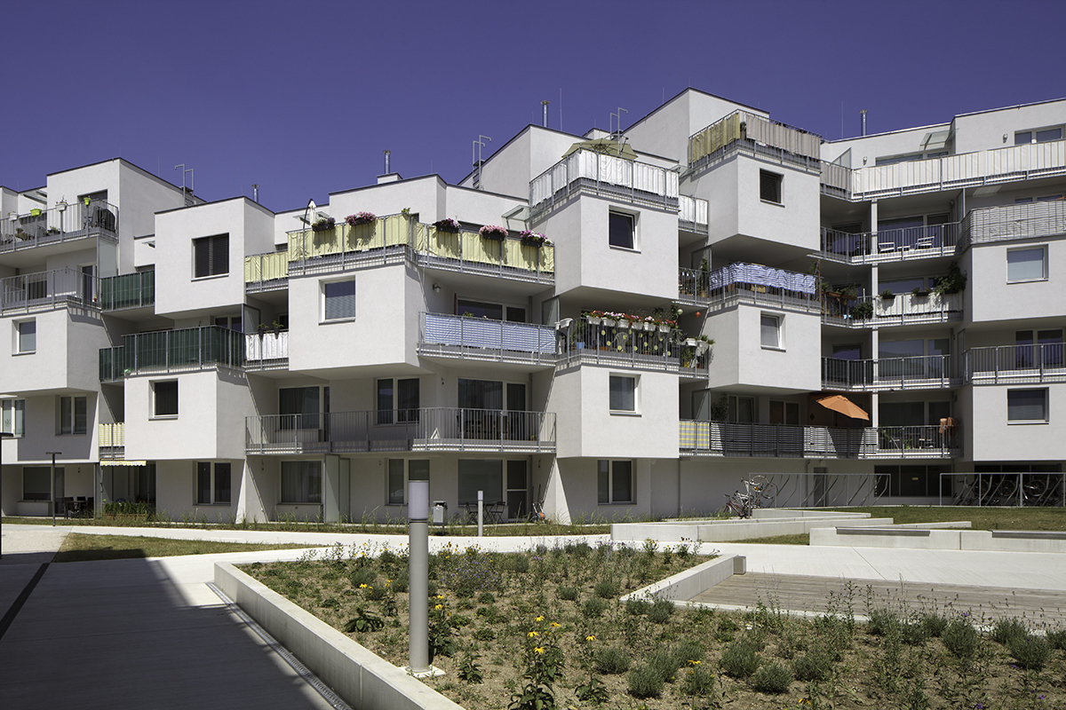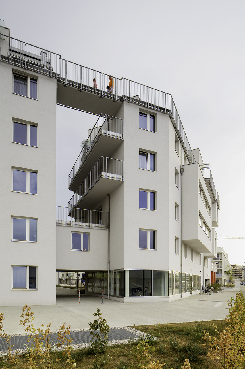 Konkurrenz erhält der Innenhof vom Freiraumangebot in luftiger Höhe. Ein Spazierweg auf dem Dach verbindet die Baukörper miteinander. Hier gelangt man, entlang der Dachwohnungen, über Brücken von einem Haus zum nächsten. Die einzelnen Bauteile der OASE 22 finden unterschiedliche Antworten auf das erweiterte Freiraumangebot auf dem Dach. Bei BOA wird gegärtnert: das Gewächshaus und Hochbeete werden gut angenommen. Über geltende Standards im geförderten Wohnbau reicht der Mehrwert, den BOA seinen Bewohnern bietet, weit hinaus. Diese Leistung wurde 2013 mit dem Bauherrenpreis entsprechend gewürdigt. (Text: Martina Frühwirth nach einem Text der Architekten)