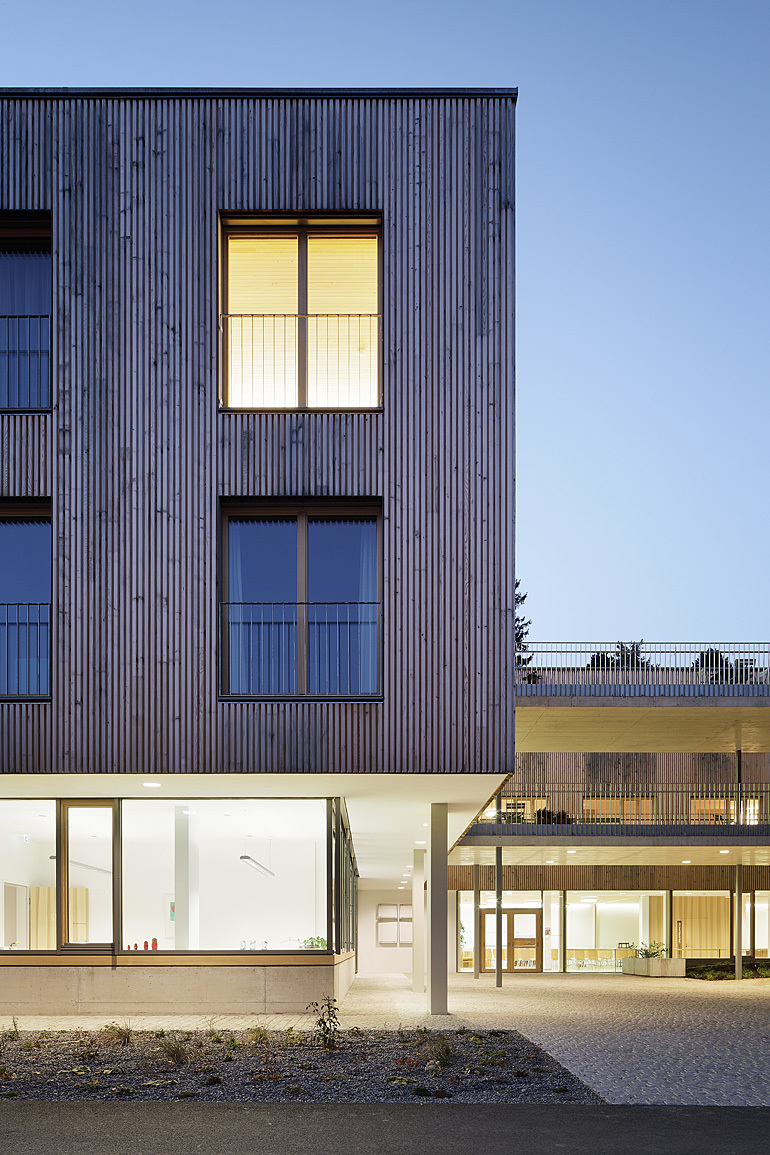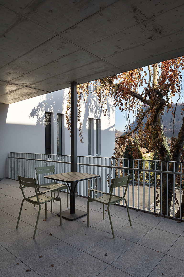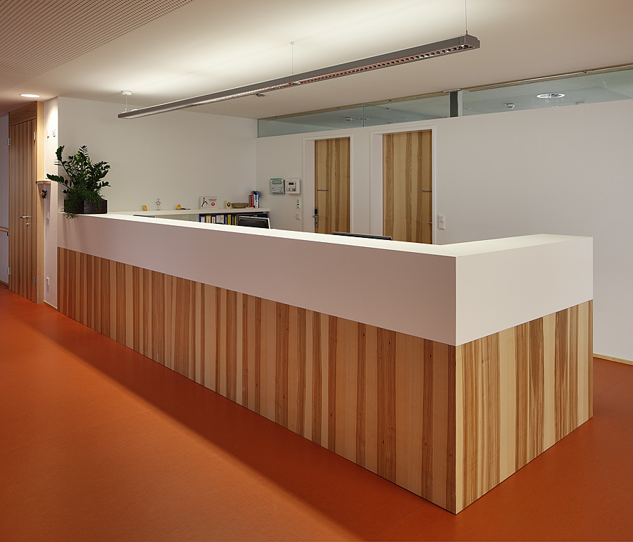 Energie: Der kompakte Neubau ist in Passivhausqualität konzipiert. Neben hoch gedämmten Außenbauteilen, gibt es kontrollierte Be-Entlüftung, mit Wärmerückgewinnung. In Kombination mit einer Fußbodenheizung ermöglicht dies Einzelraumtemperaturregelung. Der Altbau wird im Zuge der Umbaumaßnahmen durch die Fassadensanierung energetisch optimiert, die Heizgrundlast für Alt- und Neubau durch Biomasse und Solarenergie gedeckt. (Text: Martina Pfeifer Steiner)