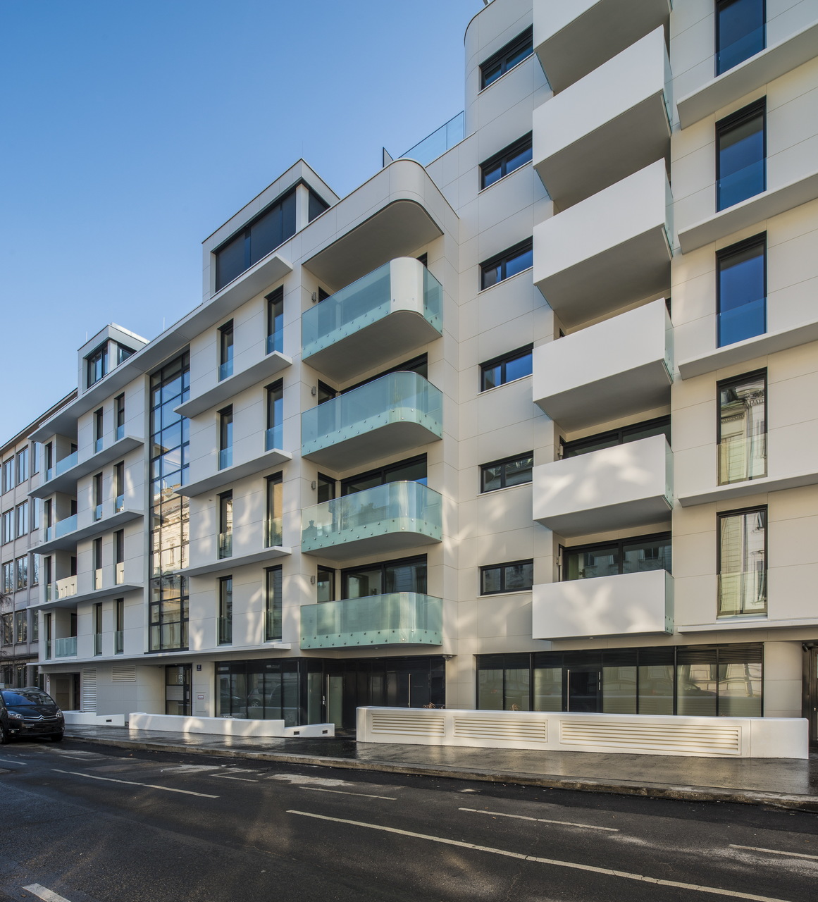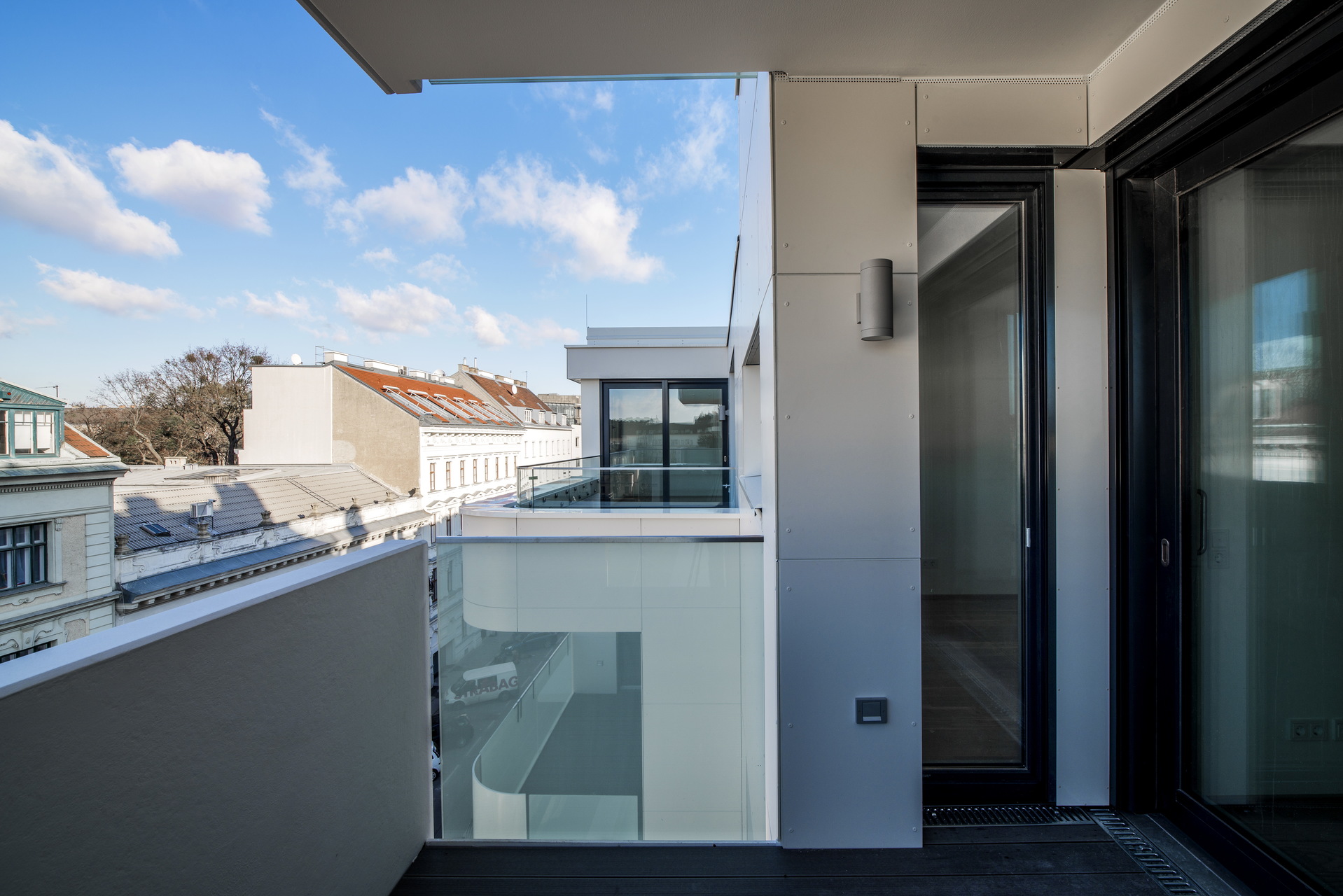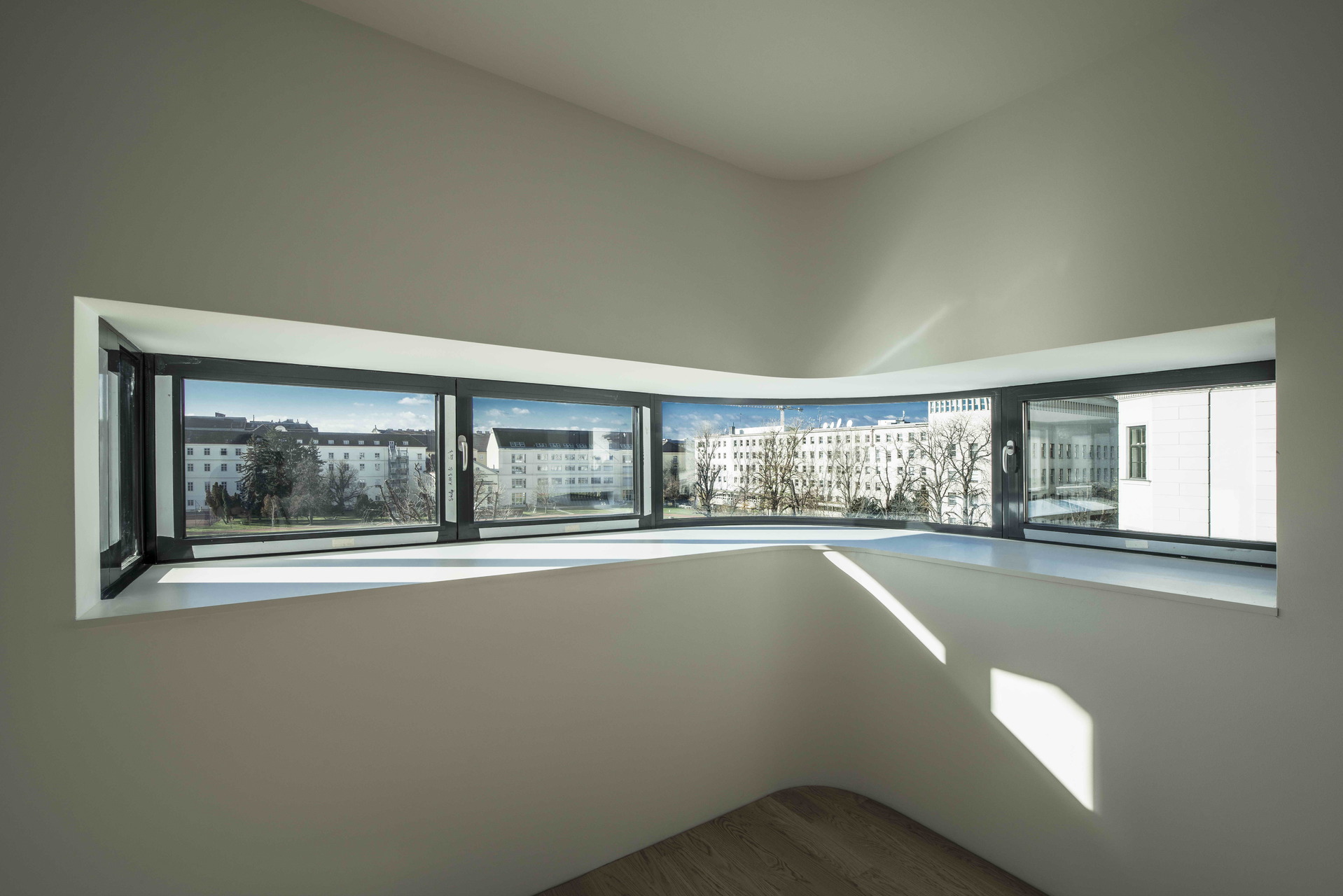 Die Grundrisse der 48 Wohnungen sind nach den Kriterien Raumkonfiguration, Behaglichkeit sowie Ausrichtung in Bezug auf die Himmelsrichtung und die gegebenen Ausblicke optimiert. Im Essbereich bieten erkerartige Fensterelemente Ausblicke, die sich ab dem zweiten Obergeschoss dank unverbauter Aussicht zu luxuriösen Stadtpanoramen aufweiten. Alle Wohneinheiten verfügen über mindestens einen Balkon, eine Loggia oder Terrasse, meist in zwei und manchmal sogar drei Himmelsrichtungen.
