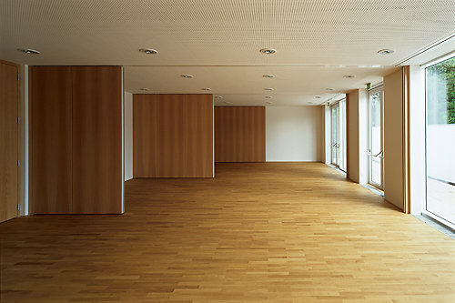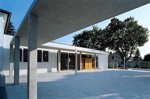 In Neu-Guntramsdorf entstand ein Platz quasi als Begleiterscheinung eines Neubaus. Das bestehende Pfarrgemeindezentrum aus den 1960er-Jahren (Architekt Bruno Tinhofer) sbedurfte adäquater neuer Räumlichkeiten, um die gestiegenen Bedürfnisse der durch Zuzug wachsenden Gemeinde zu erfüllen. Das Architektenteam Runser/Prantl ersetzte den alten Pfarrsaal durch einen attraktiven eingeschoßigen Neubau mit einem unterteilbaren Saal und großzügigem Foyer, der an das bestehende zweistöckige Pfarrhaus angebunden wurde. Der einst kleinteilig strukturierte Vorplatz mit zahlreichen Niveausunterschieden und einem Patchwork aus Pflasterungen und Grünflächen war als Freifläche für Zusammenkünfte und Feierlichkeiten nicht brauchbar. Zur Straße hin mit einer beinahe mannshohen Mauer abgeschirmt, war er von der Straße aus kaum einsehbar. Auch hier musste die Bevölkerung von Elementen, die über die Jahre vertraut wurden, Abschied nehmen – besonders schwer dürfte es nicht gefallen sein. Auf ein einheitliches Niveau gebracht und mit einem schlichten Granitbelag versehen, der den Ein-Meter-Raster des Neubaus aufnimmt, wurde der Platz nicht nur nutzbar, sondern auch großzügig gemacht.