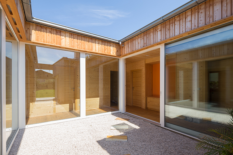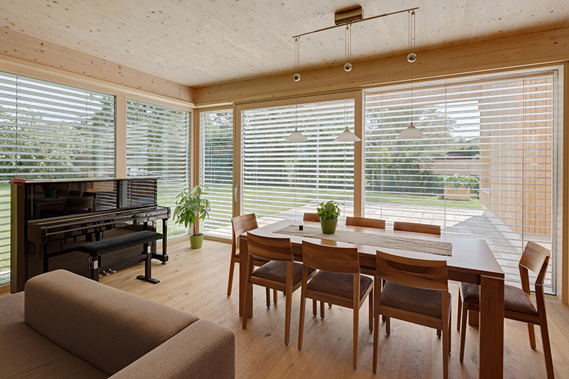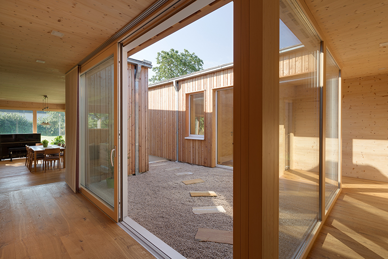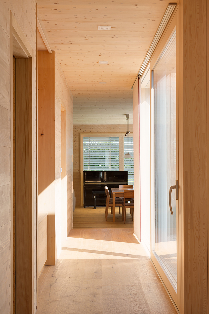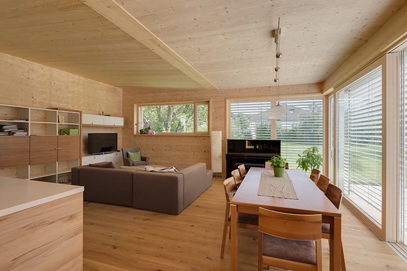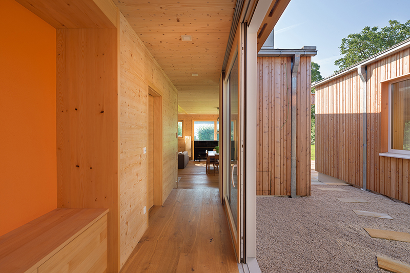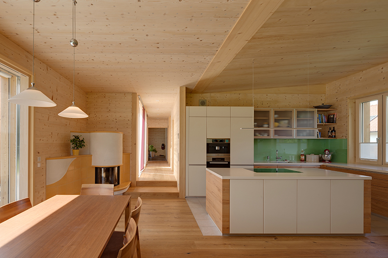 Um ein angenehmes Raumklima sowie ein ökologisch hochwertiges Wohnhaus entstehen zu lassen wurden für die Errichtung unverleimtes und chemisch unbehandeltes Vollholz, Lehmputz sowie Holzwolledämmung verwendet. Das Gebäude wurde als Niedrigenergiehaus mit Wärmepumpe und kontrollierter Wohnraumlüftung mit Wärmerückgewinnung ausgeführt. (Text: Architekten)