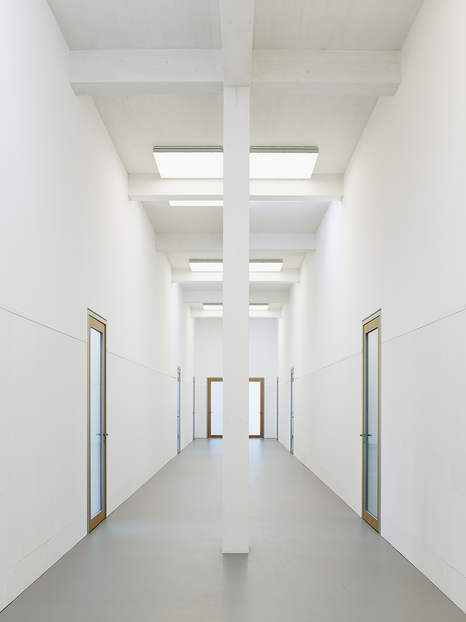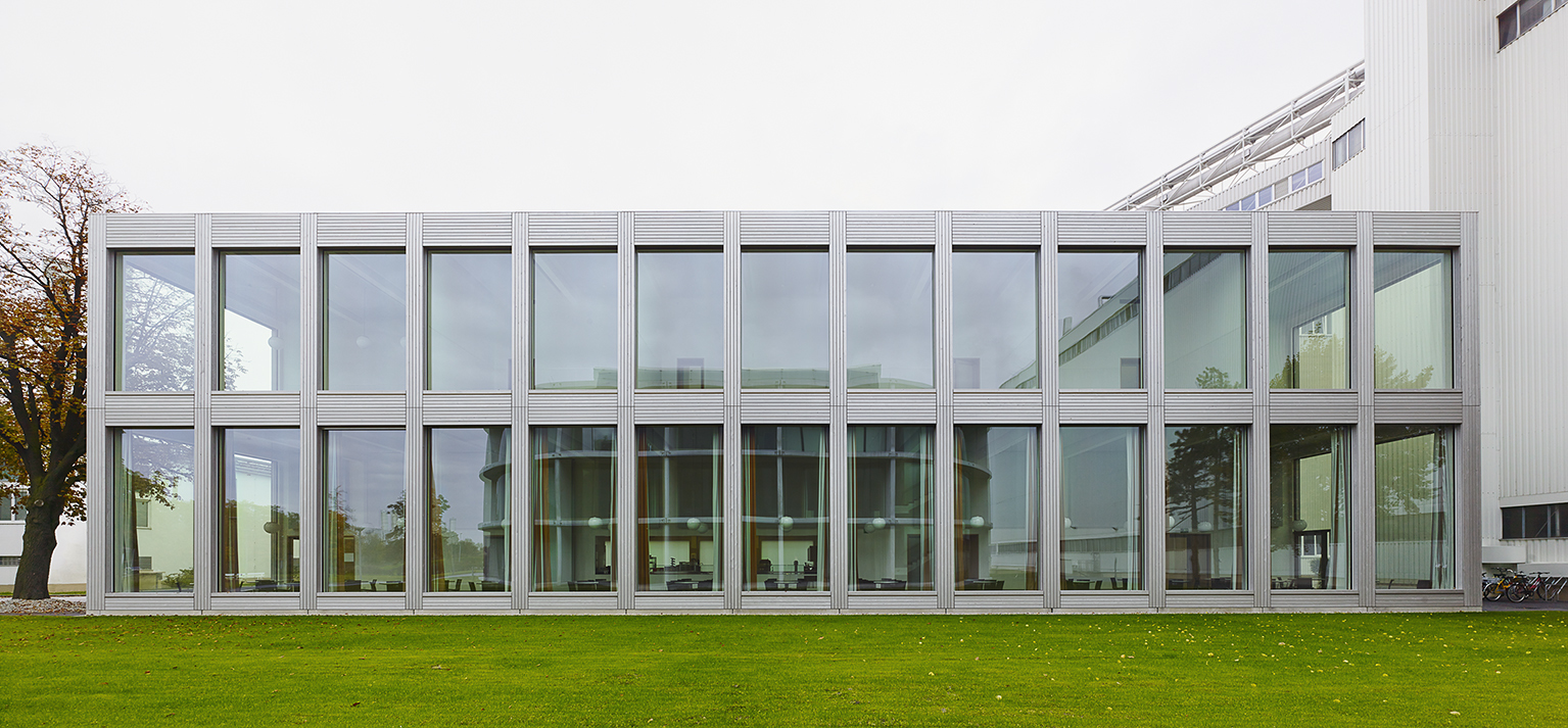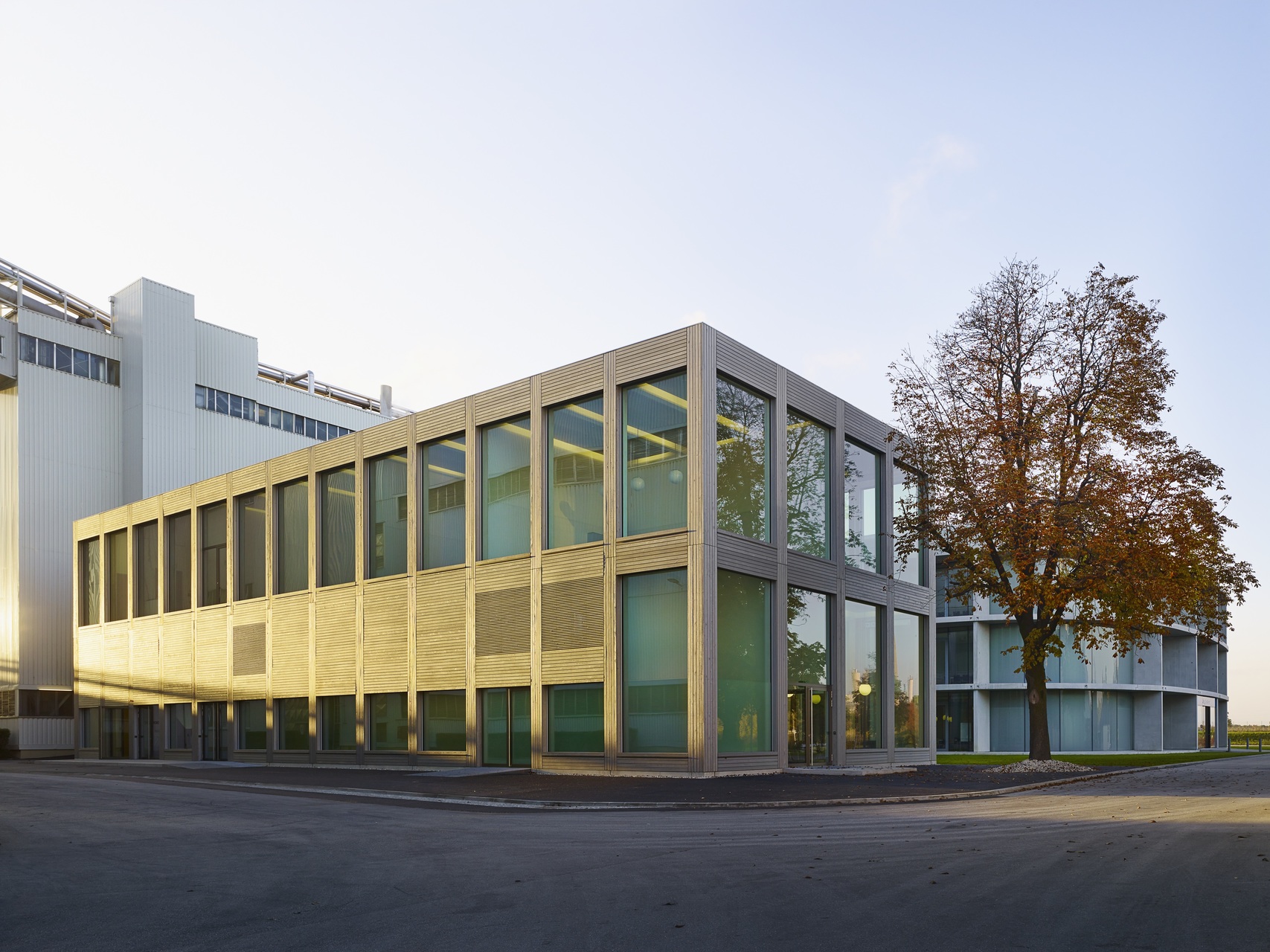 In weitläufiger Landschaft nahe der österreichisch-tschechischen Grenze steht eine enorme Fabrik mit eigenem Gleisanschluss, eigener Hochspannungstrasse, Silos und Kläranlagen – eine von mehreren Produktionsstätten einer Firma, die zu den weltweit führenden Herstellern von Citronensäure, Milchsäure und Mineralsalzen zählt. Primär wird dort Mais aus näherer und weiterer Umgebung verarbeitet, tausende Tonnen pro Tag. 350 Mitarbeiter:innen werken hier, viele im Schichtbetrieb. Die Konzernleitung wollte ein neues Büro- und Konferenzzentrum schaffen, auch für die Meetings ihrer Topleute aus aller Welt, ergänzt durch ein Werksrestaurant. Nach eingehender Kostenprüfung entschied man sich, alte Trakte durch Neubauten zu ersetzen. Die Planung erstellte der für die Eigentümerfamilie auch in anderen Aufgaben tätige und bewährte Architekt. Bürobau und Restaurant bilden in vieler Hinsicht komplementäre Elemente, das eine als zentrierter Atriumtyp aus Betonfertigteilen und Glas, vorgerüstet auf zwei weitere mögliche Stockwerke, das andere als längs gestreckter Pavillon in Prefab-Holzbauweise, der sich an einem Ende in voller Höhe auf einen mächtigen, alten Kastanienbaum hin öffnet, am anderen aber Durchblick in die Betriebshallen bietet. Beide Trakte spiegeln in ihrer hochwertigen Gestaltung bis ins Detail das Format und den kulturellen Anspruch der Bauherrschaft. (Jurytext: Otto Kapfinger)