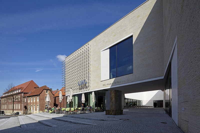 Für das Landesmuseum für Kunst und Kulturgeschichte im Münster hat Volker Staab einen Erweiterungsbau geschaffen. Dieser zeichnet sich aus durch eine Sequenz von Eingangshof, Foyer und lichtem Patio.
