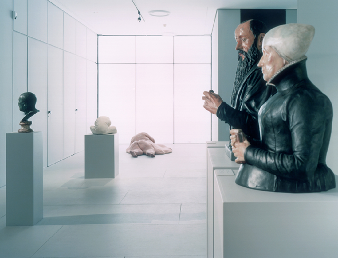 Eine römische Skulptur und spätmittelalterliche Stifterfiguren, die in einen räumlichen Dialog mit zeitgenössischen Kunstwerken treten, bilden den räumlichen Abschluss: ausgehend von den leicht überhöht präsentierten, historischen Skulpturen stuft sich der Raum nach hinten hin ab, endet mit der Skulptur „The Matrix of Amnesia“ von John Isaacs, vor einer weiß hinterleuchteten Wand. (Text: Bernhard Denkinger)