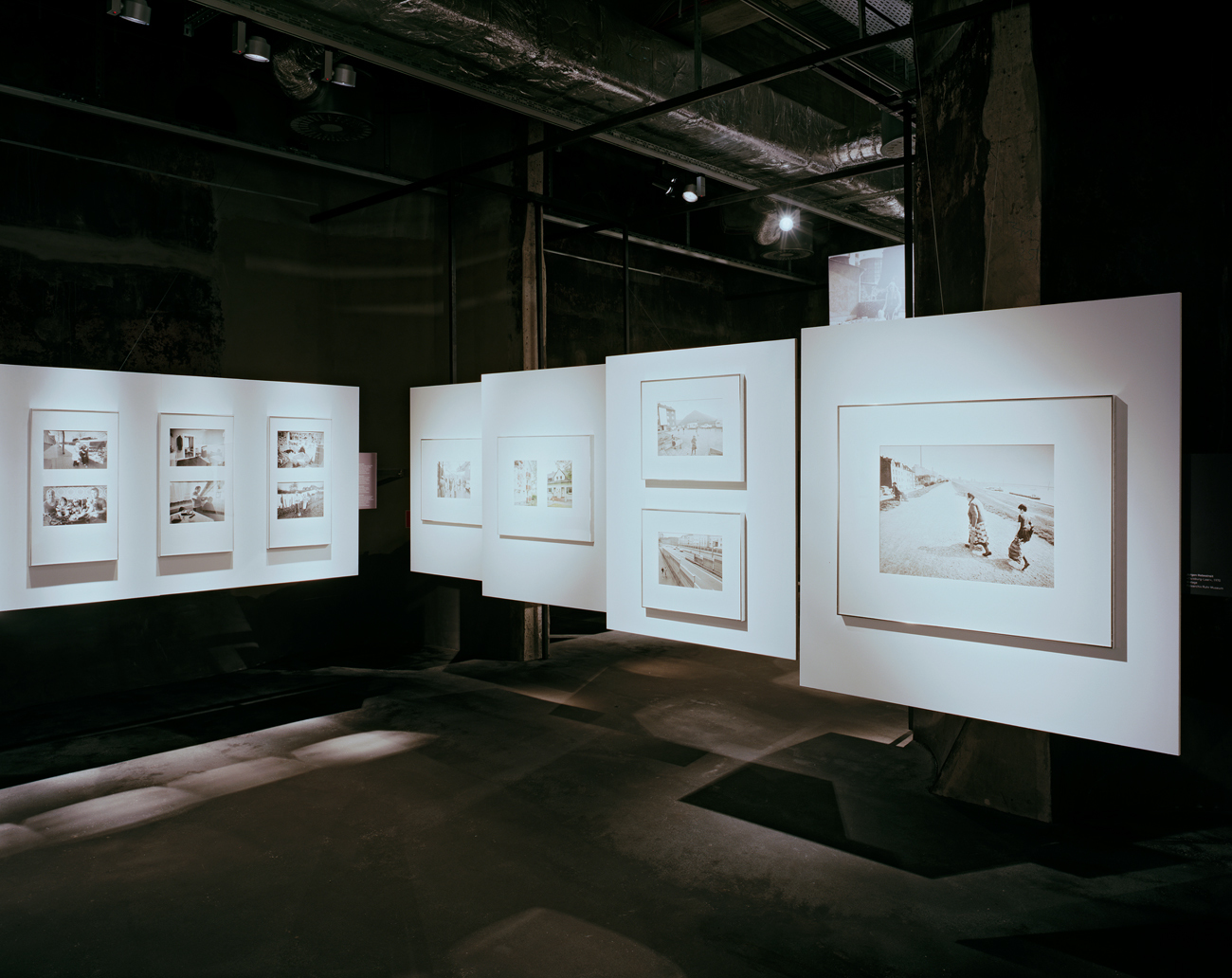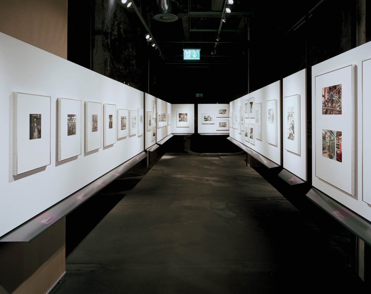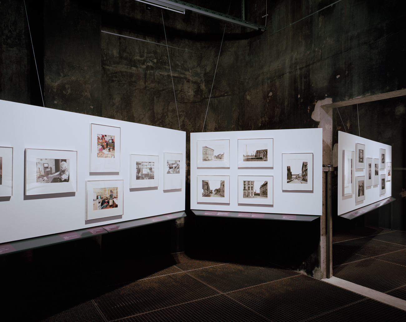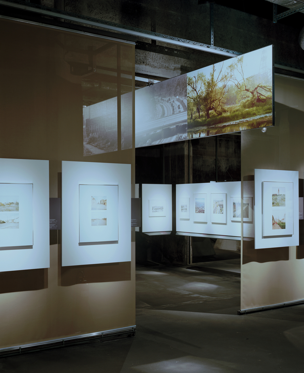 Die Exponate werden aus der klassischen Wandpräsentation gelöst, erhalten jeweils auf das Einzelbild oder die Bildgruppe zugeschnittene Bildwände, die im Raum schweben. Die Textflächen liegen leicht nach rückwärts versetzt, seitlich und unterhalb der Bildwände.