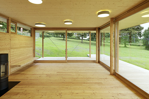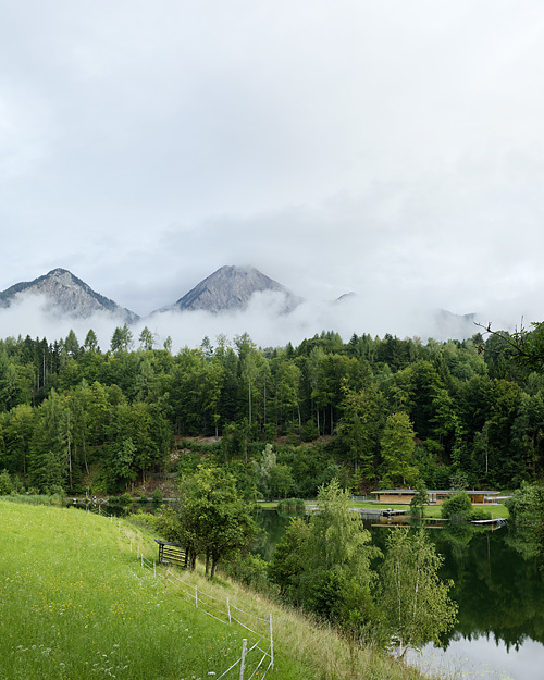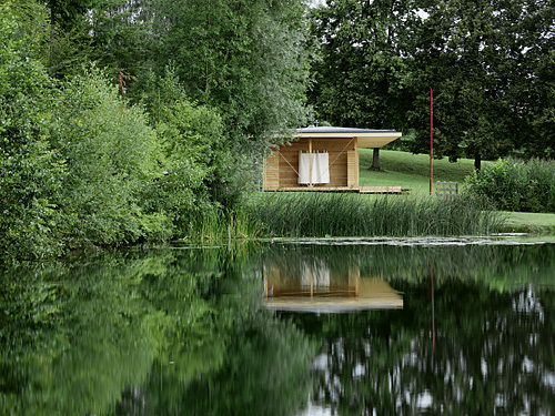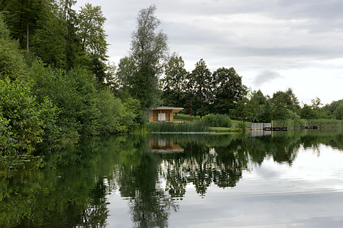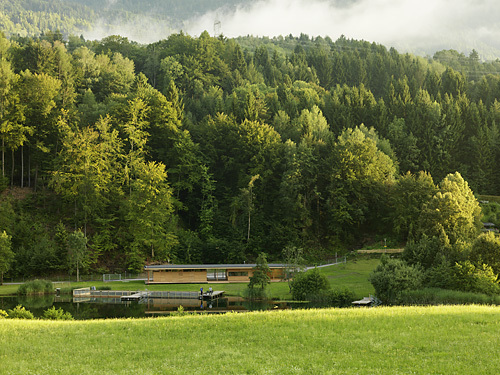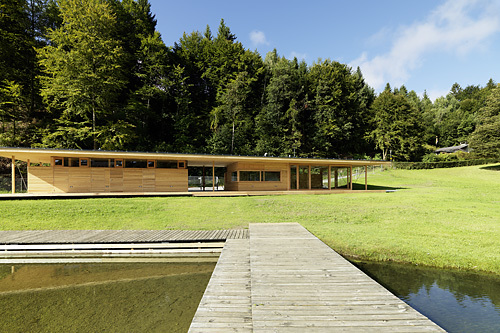 Das neue Badehaus sieht sich in der Tradition Kärntner Bauten am See: es besteht fast ausschliesslich aus Massivholz.