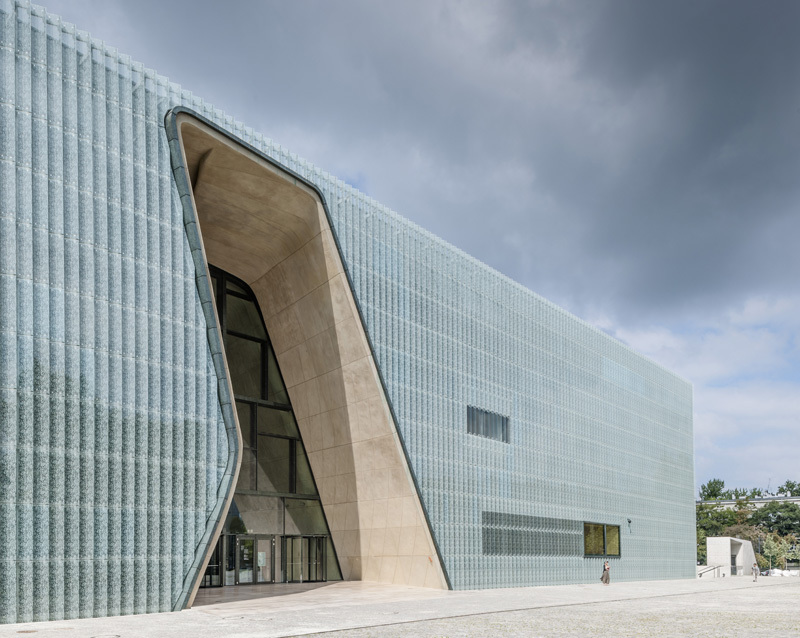 „Das Design der gekurvten Wände war eine echte Herausforderung“, erklärt Marcin Ferenc, Projektleiter im zuständigen Warschauer Partnerbüro Kurylowicz & Associates. „Eigentlich wollten wir die Wand massiv aus Beton ausführen, aber das wäre schalungstechnisch so aufwändig und so teuer gewesen, dass wir das Foyer in technischer Hinsicht komplett umplanen mussten.“ Sogar mit Schalungsballons und aufblasbaren Hilfskonstruktionen habe man zwischenzeitlich geliebäugelt, so Ferenc.