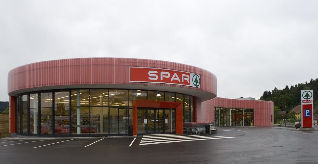 Einzelhandelsmärkte mit vorgelagerten Parkplätzen an Ortseinfahrten sind die Regel. In Krumpendorf am Wörthersee erschwerte jedoch der Zuschnitt des Grundstückes und die Lage, direkt am vorhandenen Kreisverkehr mit Anschluß an die Autobahnabfahrt, die städtebauliche Aufgabe.Gelöst wurde diese baukulturelle Herausforderung, durch die nierenartige Form des Baukörpers, wodurch sich im Eingangsbereich ein funktioneller „Marktplatz“ ergibt, sich der Raum in weiterer Folge fließend verengt und abschließend zur Frischetheke hin wieder erweitert.