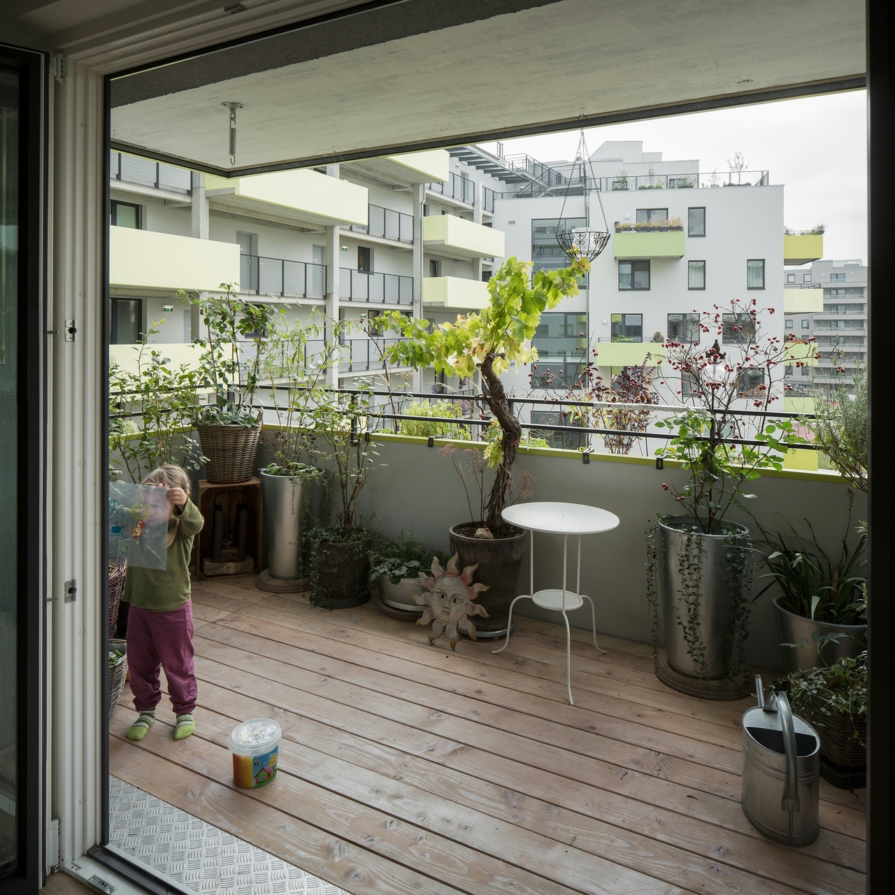 Die Wohnhausanlage so.vie.so besteht aus drei miteinander verschränkten Baukörpern. Der langgezogene, nord-süd-orientierte Hauptbaukörper bildet mit dem zum Helmut-Zilk-Park zugewandten und höheren Bauteil ein L. Hofseitig ist diesem Zusammenschluss ein leicht geschwenkter Baukörper vorgesetzt. Im Zwischenraum findet eines der beiden Treppenhäuser Platz, dass sich über einen nordseitigen Laubengang mit der zweiten Erschließung – im Gelenk des Ls – verbindet. Punktuelle Verbreiterungen des Laubengangs sind dabei der erste und unmittelbarste Treffpunkt für die Bewohner:innen. Weitere Gemeinschaftsräume komplettieren die umfassende Betrachtung der Begegnungszonen. Die in verschiedenen Grüntönen gehaltenen und geschoßweise versetzen Balkone gliedern die Fassade stimmig. Besondere Beachtung verdient aber auch das Konzept der Partizipation: obwohl es sich um einen klassischen sozialen Wohnungsbau handelt, hat es in einem moderierten Prozess allen zukünftigen Bewohner:innen vielfältige Möglichkeiten zur Mitsprache gegeben. Und vielleicht gerade ob dieser Möglichkeiten: Entstanden ist auch ein Musterbeispiel für energieeffizienten und ökologisch hochwertigen Wohnungsneubau. (Jurytext Staatspreis Architektur & Nachhaltigkeit 2014)