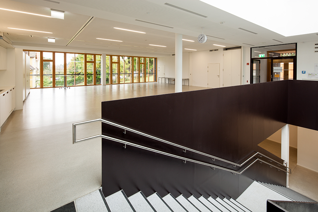 Durch bauliche Struktur, Transparenz, Offenheit und die Einbindung in die Umgebung entstehen in der neuen Volksschule Mariagrün Möglichkeitsräume, die Arbeit, Entspannung, Aktivität, Reflexion, Zugehörigkeit, Weltoffenheit und die Vielfalt des Lernens zulassen.