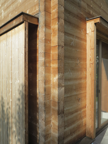 Die Neuinterpretation der lokalen Blockbauweise bei dem Projekt in Fügen zeigt auf der abstrakten Ebene der „Grundrissüberlagerung“ eine irritierende Übereinstimmung mit dem historischen Gebäude in Zell; in der physischen Wahrnehmung vor Ort hingegen erscheinen die beiden Häuser trotz aller Ähnlichkeit als eigenständige Bauten mit unterschiedlicher Prägung. Der direkte Vergleich veranschaulicht, welch großer gestalterischer Spielraum sich innerhalb des klassischen Blockbaus öffnet und wie man mit leichten Abwandlungen zu charakteristischen Lösungen gelangen kann – ganz im Sinne des Weiterführens und Weiterbauens einer lokalen Bauweise. (Text: Martin Feiersinger)