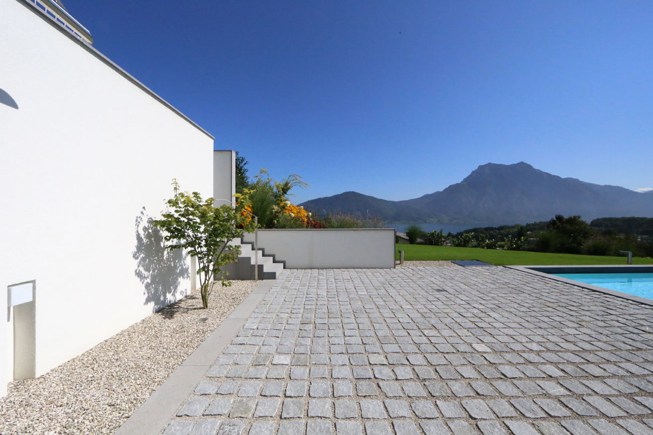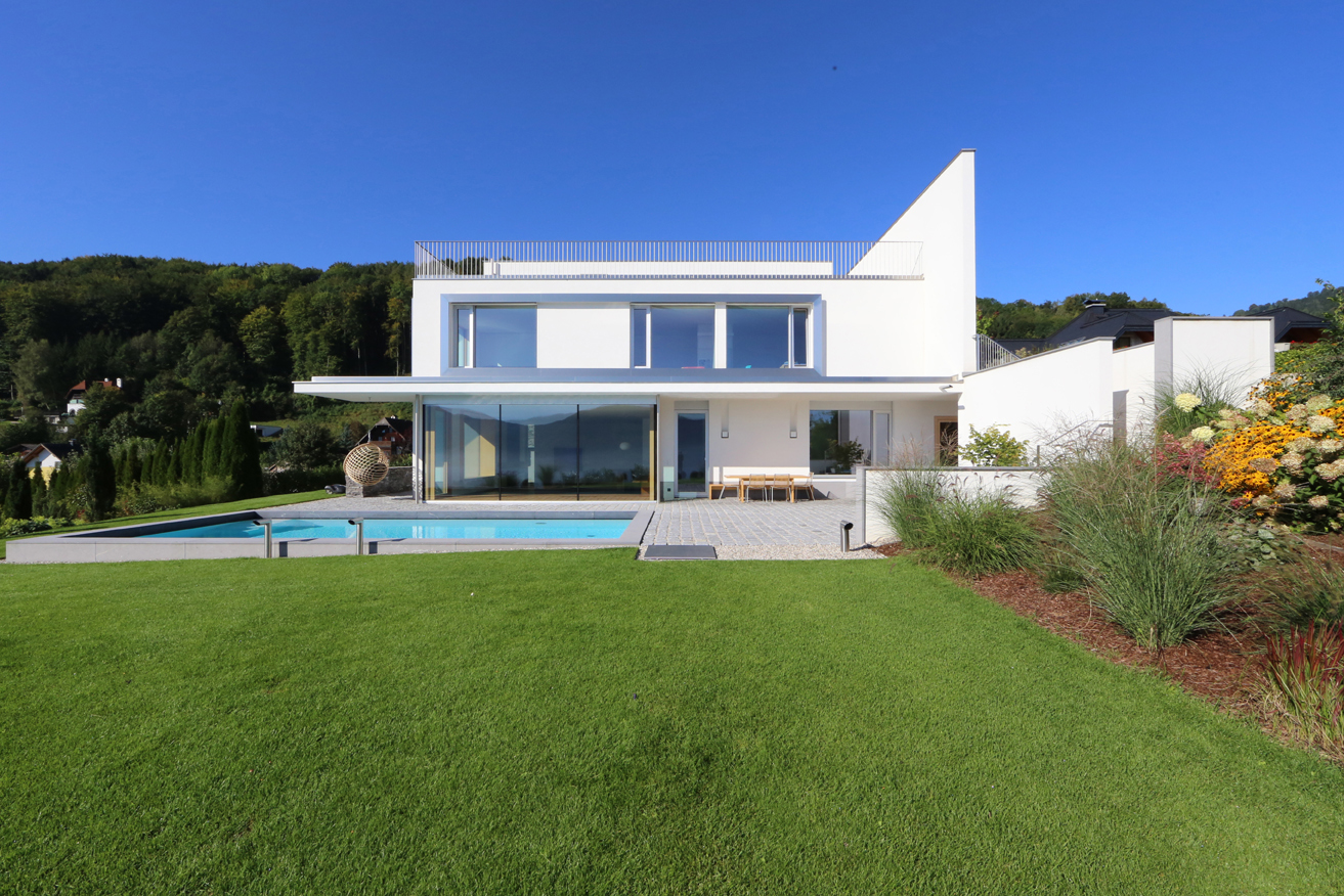 Der prächtigen Fernsicht geschuldet konnte auch noch ein Dachgeschoß mit großzügiger Terrasse hinzugefügt werden.