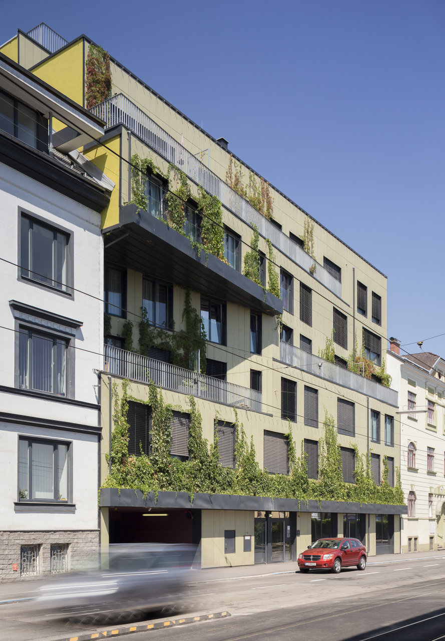 Die Kreativität und das Engagement aller Beteiligten – von der Politik und Beamtenschaft bis hin zur Planungs- und Bauzunft – müssten sich um die Verbesserung der Rahmenbedingungen bemühen, sodass wieder mehr „Architektur“ zum Wohnen entsteht, die diesen Namen auch verdient hat . Bis es allerdings so weit ist, wird die Fassade des neuen Hauses in der Ferihumerstraße vermutlich schon üppig zugewachsen sein.