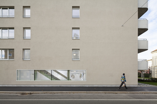 Den 2011 dazu ausgeschriebenen, EU-weiten Wettbewerb gewannen Schenker Salvi Weber Architekten mit einem Projekt, das die Jury als „verblüffend einfache Neuinterpretation einer Blockrandbebauung“ überzeugte. Ihr Konzept beruht auf der Grundidee einer klaren Trennung von Straßen- und Hofraum in eine „harte Schale“ und einen „weichen Kern“. Zur Straße hin wurden – analog zum U-förmigen Vorgängerbau – die bestehenden Fluchten des gegenüberliegenden „Schlachthofblocks“ bzw. der benachbarten „Trainskaserne“ weitergeführt. Die straßenseitige Fassade wurde betont schlicht gestaltet, womit sich der Neubau unauffällig in den städtischen Raum integriert.