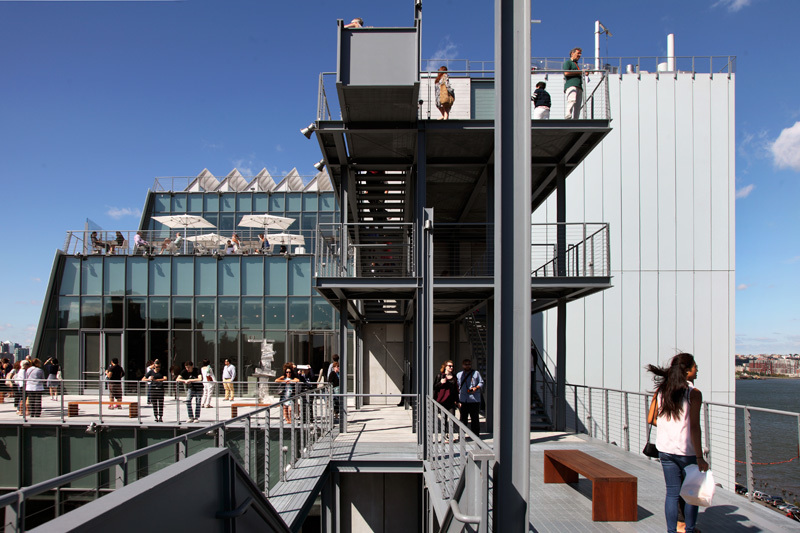 Piano hat dem Whitney Museum of American Art ein neues Gebäude errichtet, im Meatpacking District, dicht am Hudson River, in einem der angesagtesten Viertel Manhattans. Ein Mischmasch von einem Gebäude, monieren seine Kritiker. Nähert man sich von Norden, lässt es an ein Krankenhaus oder eine Pharmafabrik denken, einförmig und steril mit seiner matt schimmernden Metallhaut. Von der Wasserseite im Westen her wirkt es mit ein wenig Fantasie wie ein Schiff, das am Ufer auf Grund gelaufen ist. Von Osten, wo die Backsteinfassaden der Gansevoort Street englisches Flair verströmen, sieht man einen Wirrwarr aus Terrassen und Treppen, grauen Industriestahl, ein Geflecht, das an New Yorks berühmte Feuerleitern erinnert.