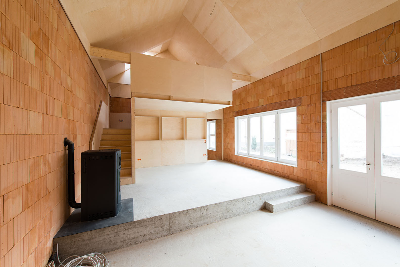 Das Haus ist energietechnische weitgehend auf erneuerbare Energien ausgelegt: Solarpaneele auf dem Dach für die Warmwasserbereitung und ein Pelletsofen, der das ganze Haus heizt. (Text: Architektin)