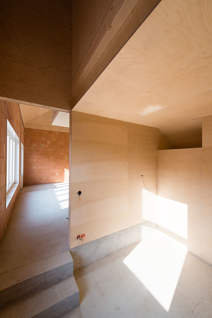 Die Räume und Raumnischen sind aus dem vorgegebenen Volumen herausgeschnitten, ineinander verzahnt und räumlich zueinander und zum Ganzen in Beziehung gesetzt.